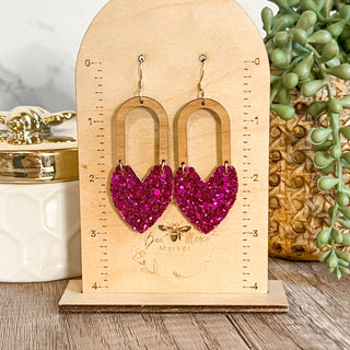 Gina Raspberry Glitter Heart Arch Earrings – Roxie's Picks