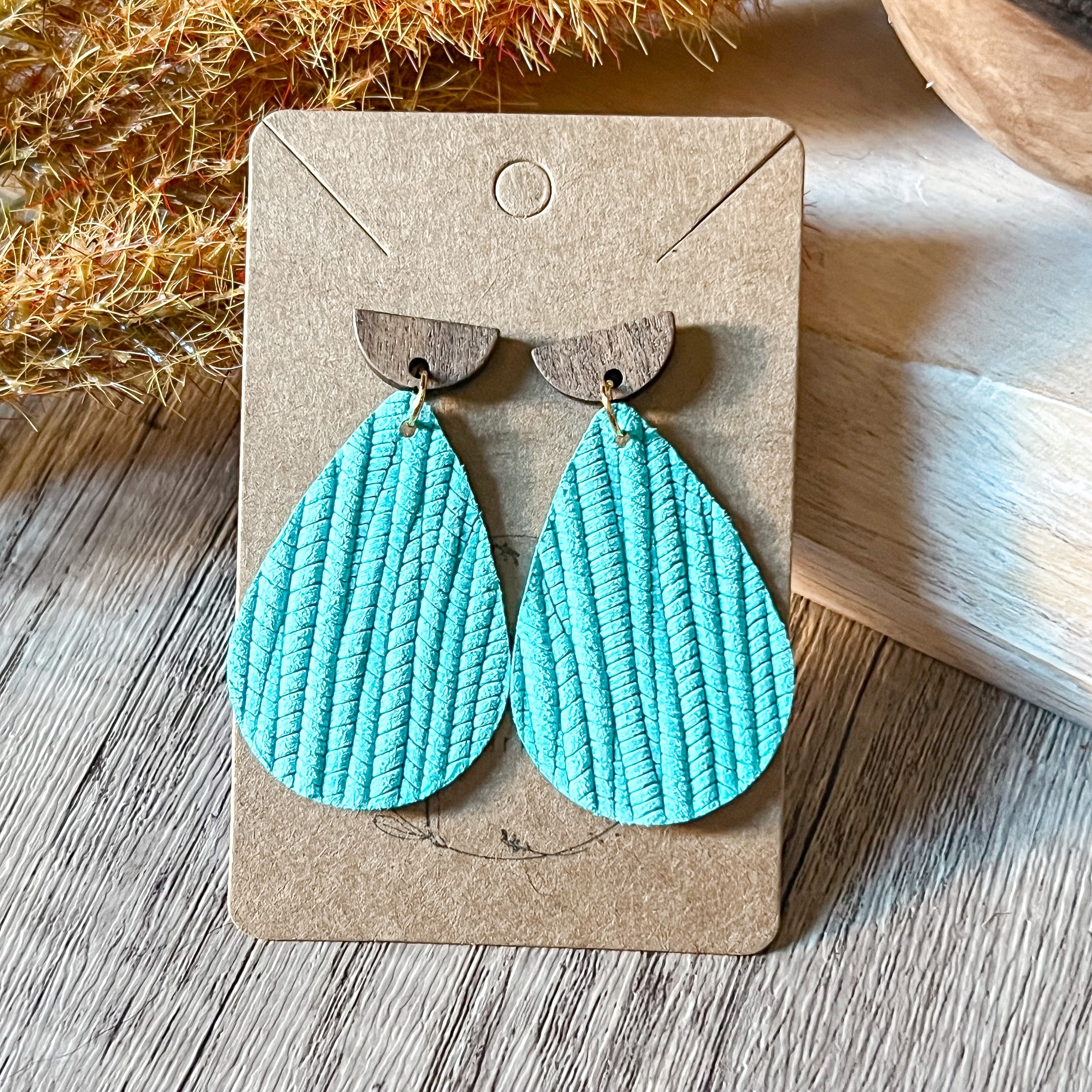 Feel confident, comfy, and cute wearing these adorable Turquoise Palm Leaf Teardrop Earrings with wood stud connectors.