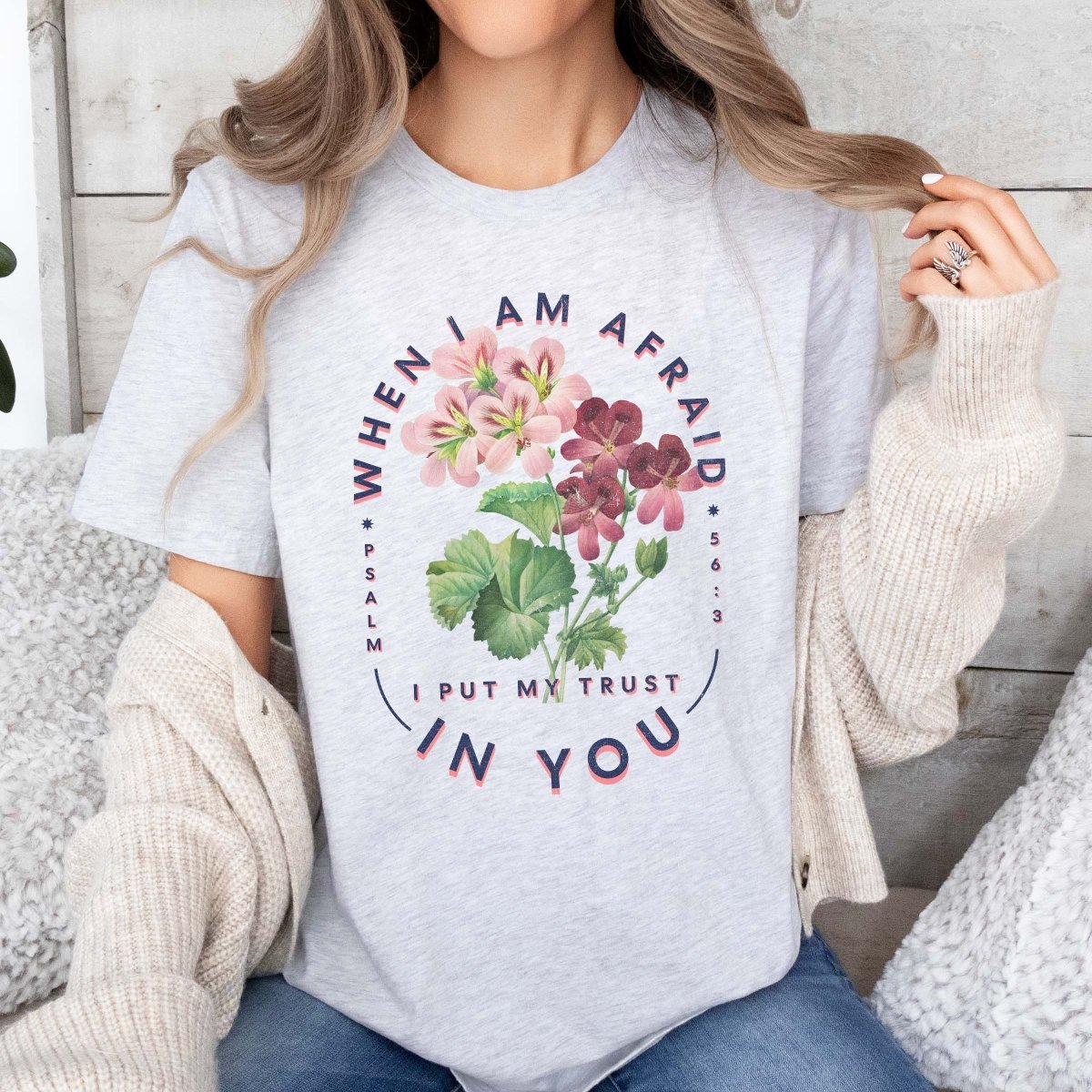 Step up your wardrobe with our "I Put My Trust In You Tee." This unique piece of trust in God clothing is designed to inspire and comfort, reminding you to lean on your faith when fear strikes. Wear this tee and carry a sense of tranquility and assurance throughout your day.