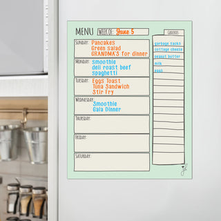 Dry Erase Meal Planner Magnet Chart - Weekly Menu Planning - Sketch Design - 11"x14"