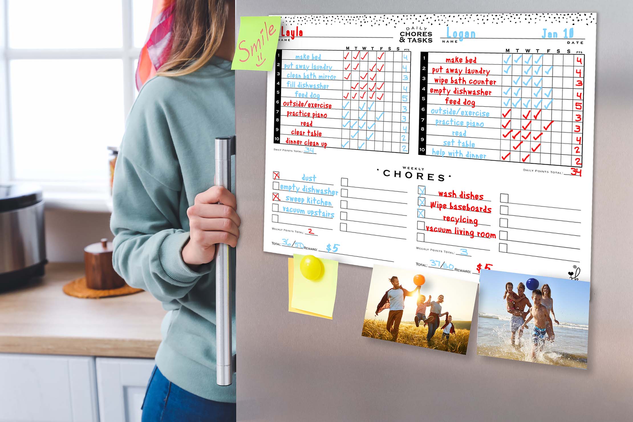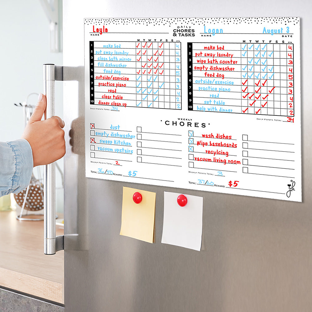 LOOK no further, our dry erase, Magnetic Weekly Chore Chart for Multiple Kids work as an assistant to keep your home running smoothly.