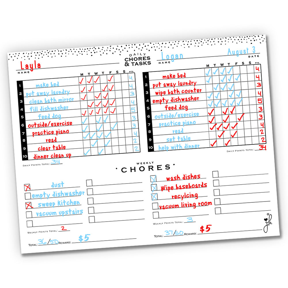- TWO CHILD - Encourage your Children to work together with this convenient Family Chores Chart.