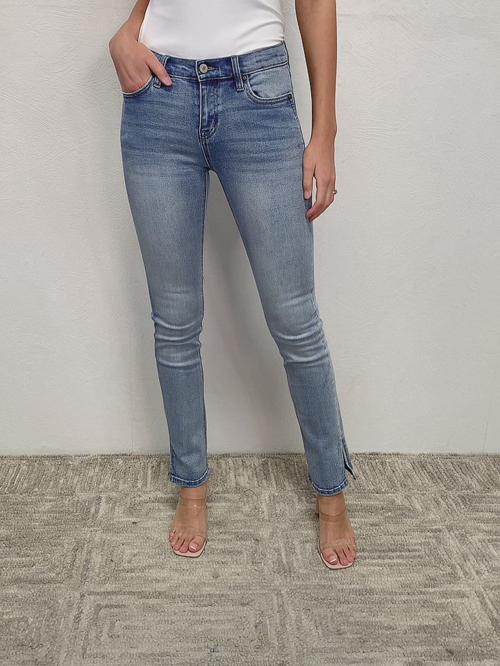 These jeans offer both style and comfort, hugging your curves while ensuring freedom of movement. The sleek side slit detail adds a modern twist, elevating the classic bootcut silhouette. Featuring a chic zip fly and a regular hem, these jeans exude sophistication.