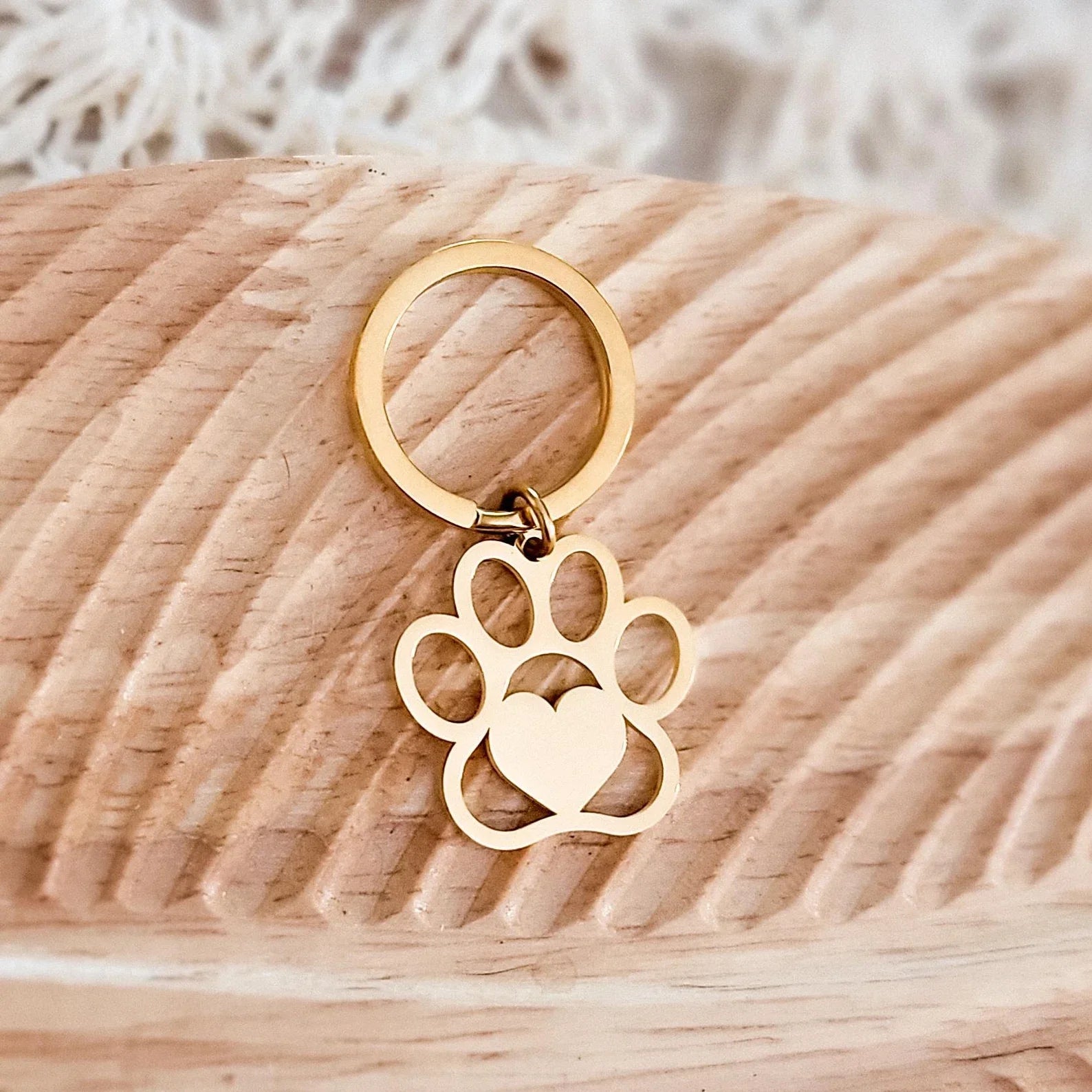 Personalized Paw Print Keychain – Laser Engraved Gold-Plated Design