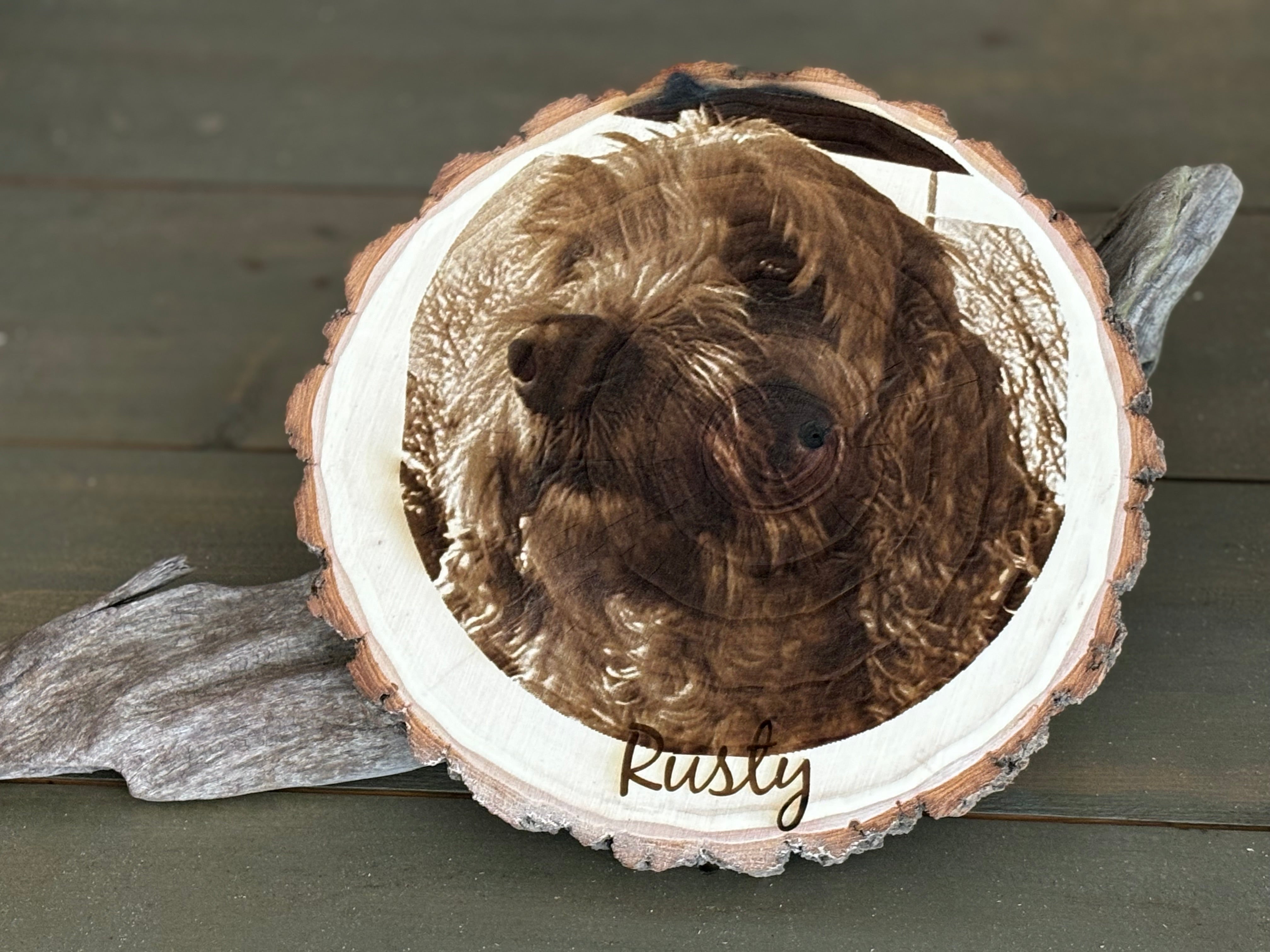 Honor your beloved pet or surprise a pet lover with a timeless keepsake! Our Personalized Photo Pet Engraving on a Wood Slice is a heartfelt way to celebrate cherished memories. Perfect as a pet memorial or a unique gift for any occasion, this custom piece combines natural beauty with sentimental value.