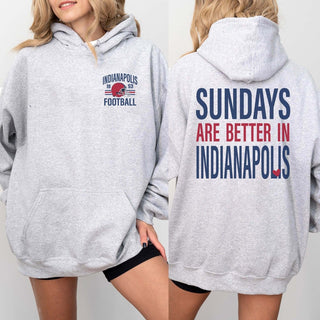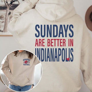 Show your Indianapolis spirit and love for the game with the Sundays Are Better In Indianapolis Graphic Hoodie. With its cozy front pocket and eye-catching graphic on the back, this hoodie is perfect for any fan eager to support their team in style.