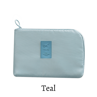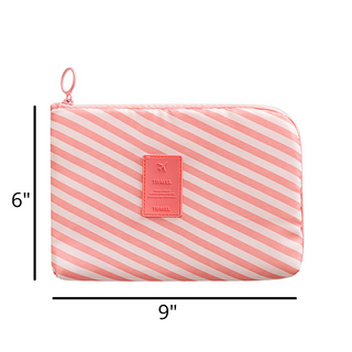 Keep it all together! One bag for all of your electronic accessories. Chargers, cubes, cords, headphones, watch cords...whatever you need all in one place! Secure zipper closure with 2 inside mesh pockets, 1 zipper pocket and 3 elastic pockets for all of your digital accessories or whatever else you need to take with you! Throw it in your bag for easy organization.