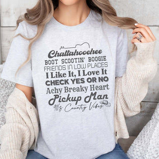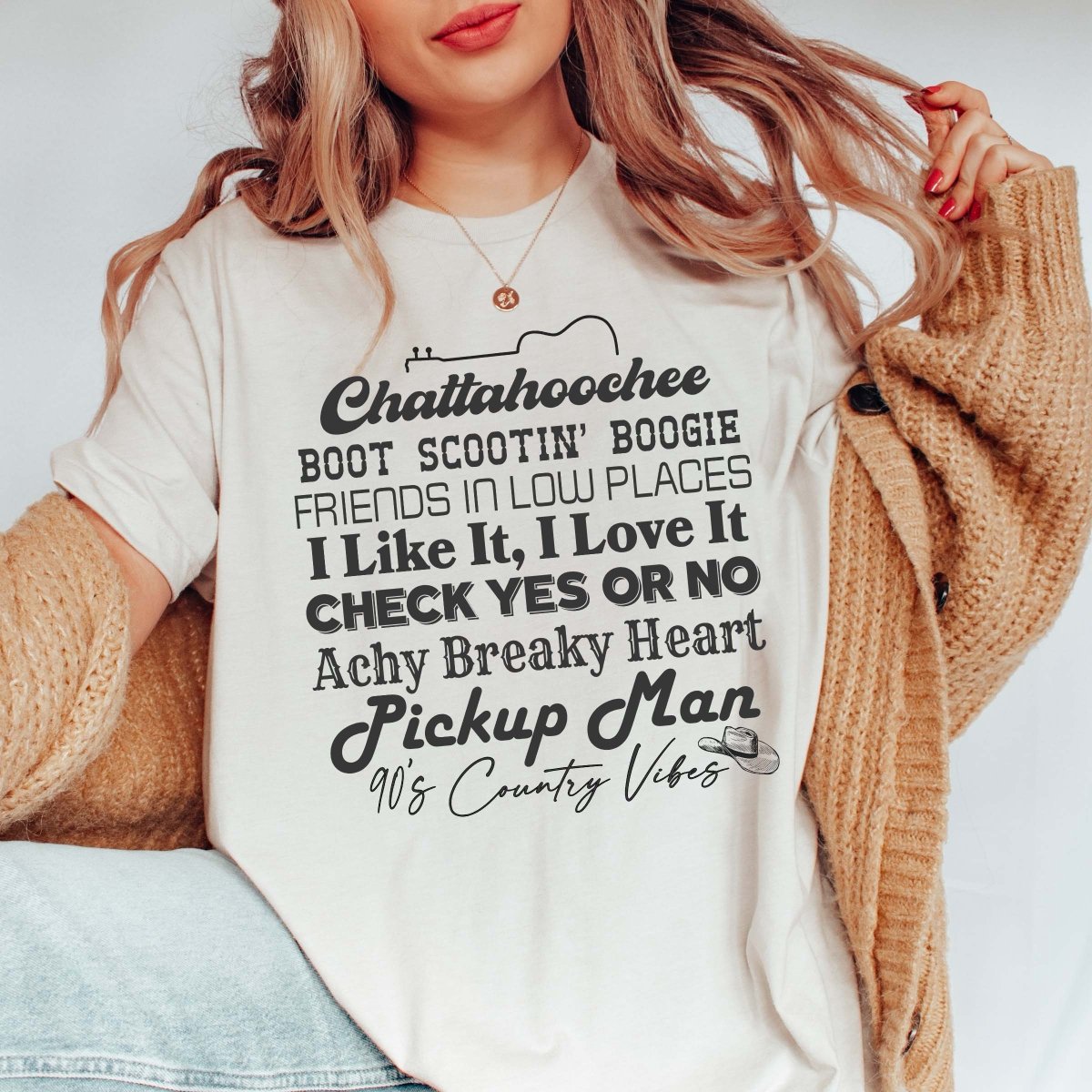 Expertly crafted from high-quality materials, this tee promises both comfort and longevity, letting you enjoy cozy moments in style. The "90's Country Vibes" design captures the essence of the era with its nods to classic country tunes, lively dance halls, and those endless, carefree summer evenings.
