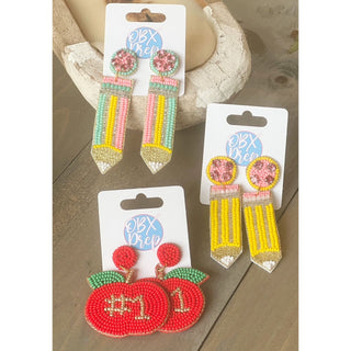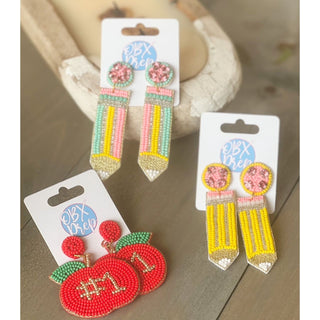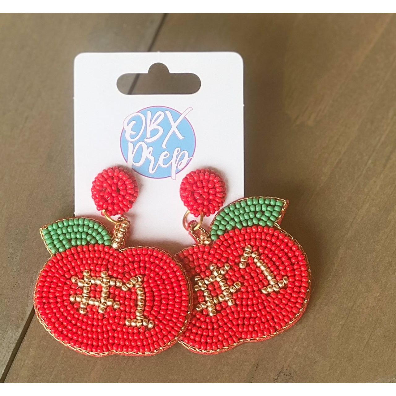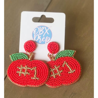 Apple #1 Seed Beaded Drop Earrings, perfect for teachers and school workers.