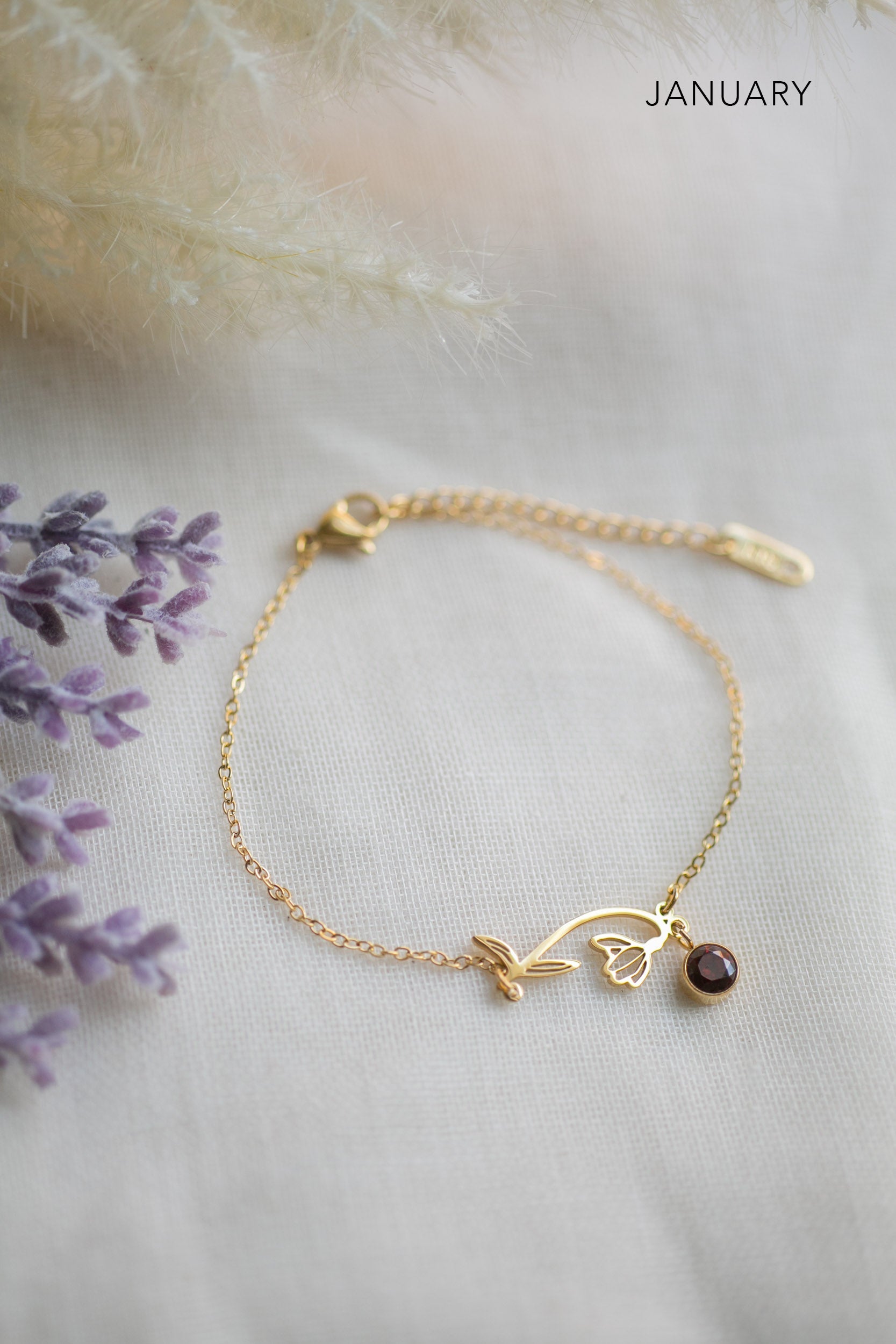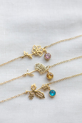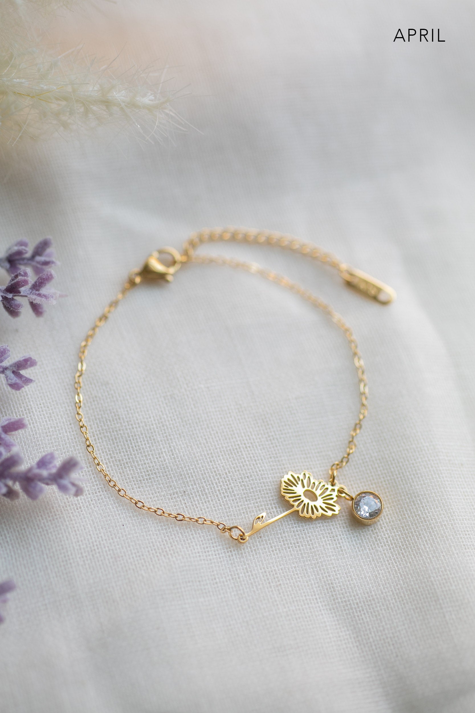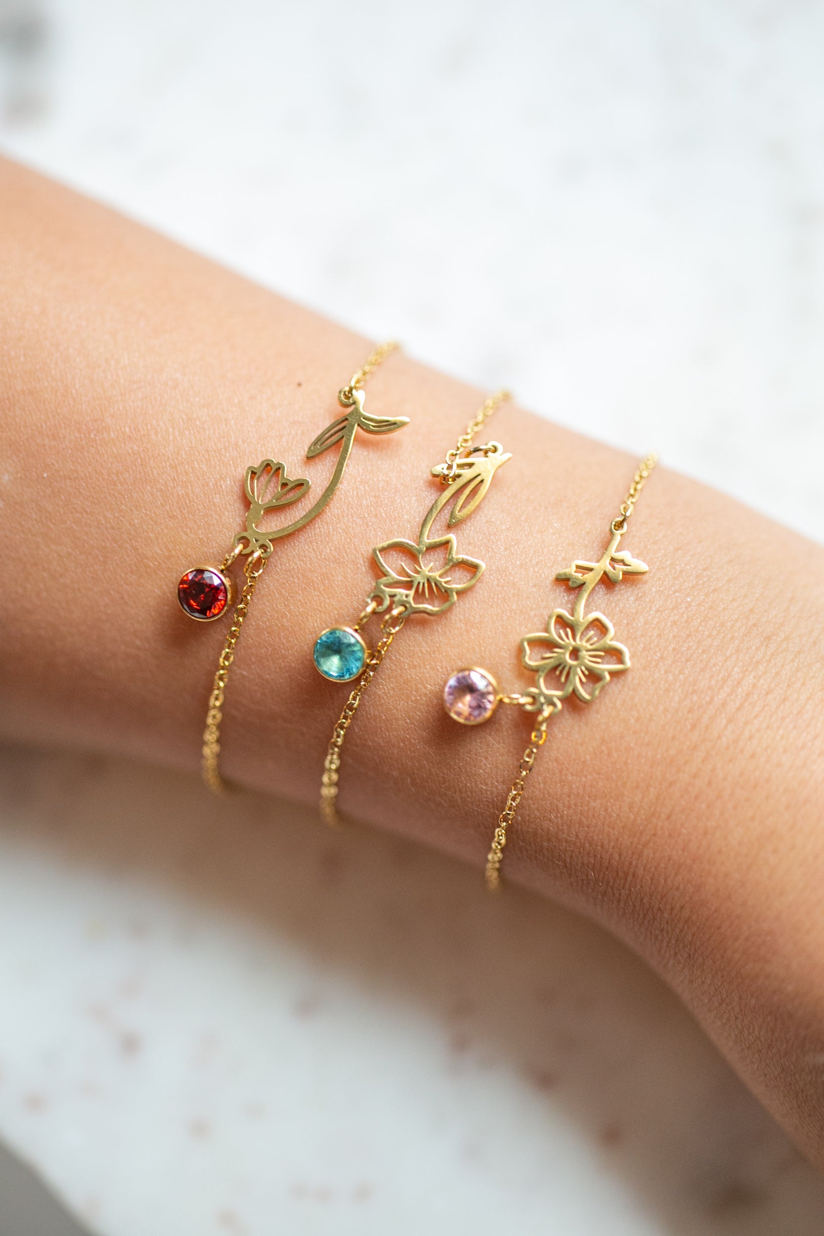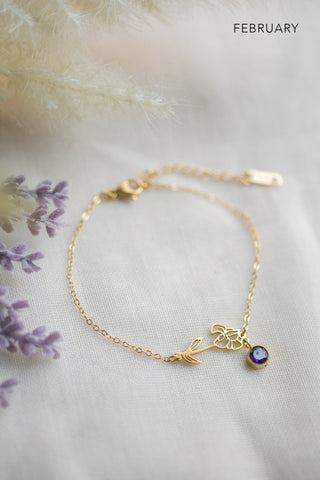 The prettiest dainty birth flower bracelet, the perfect gift for someone special! Featuring each month's birth flower accompanied by a sparkly CZ birthstone charm.