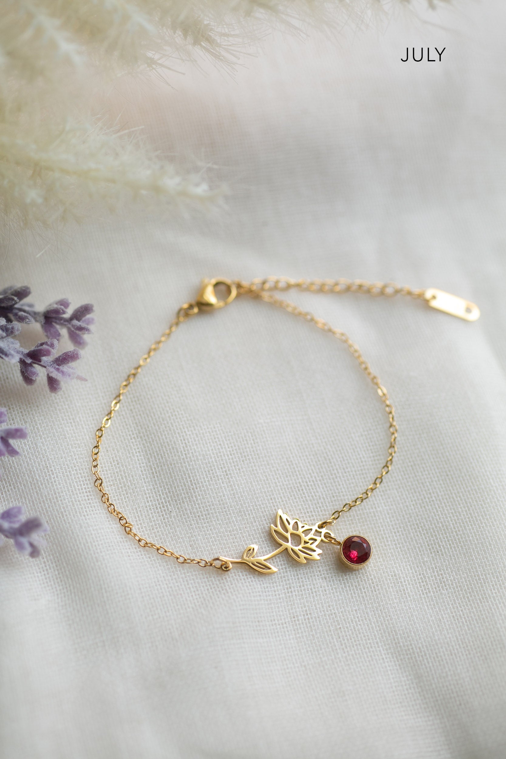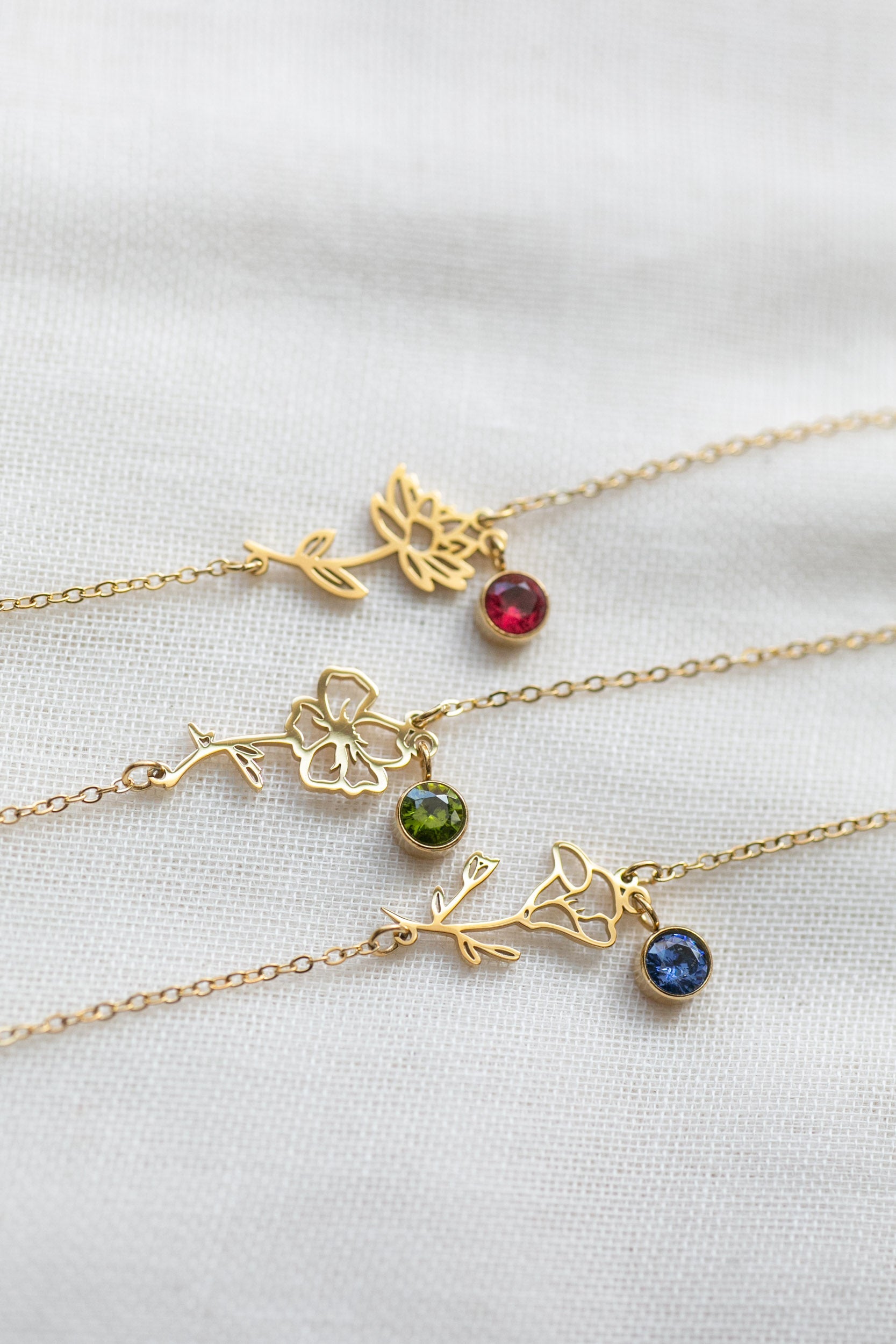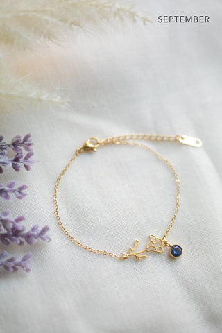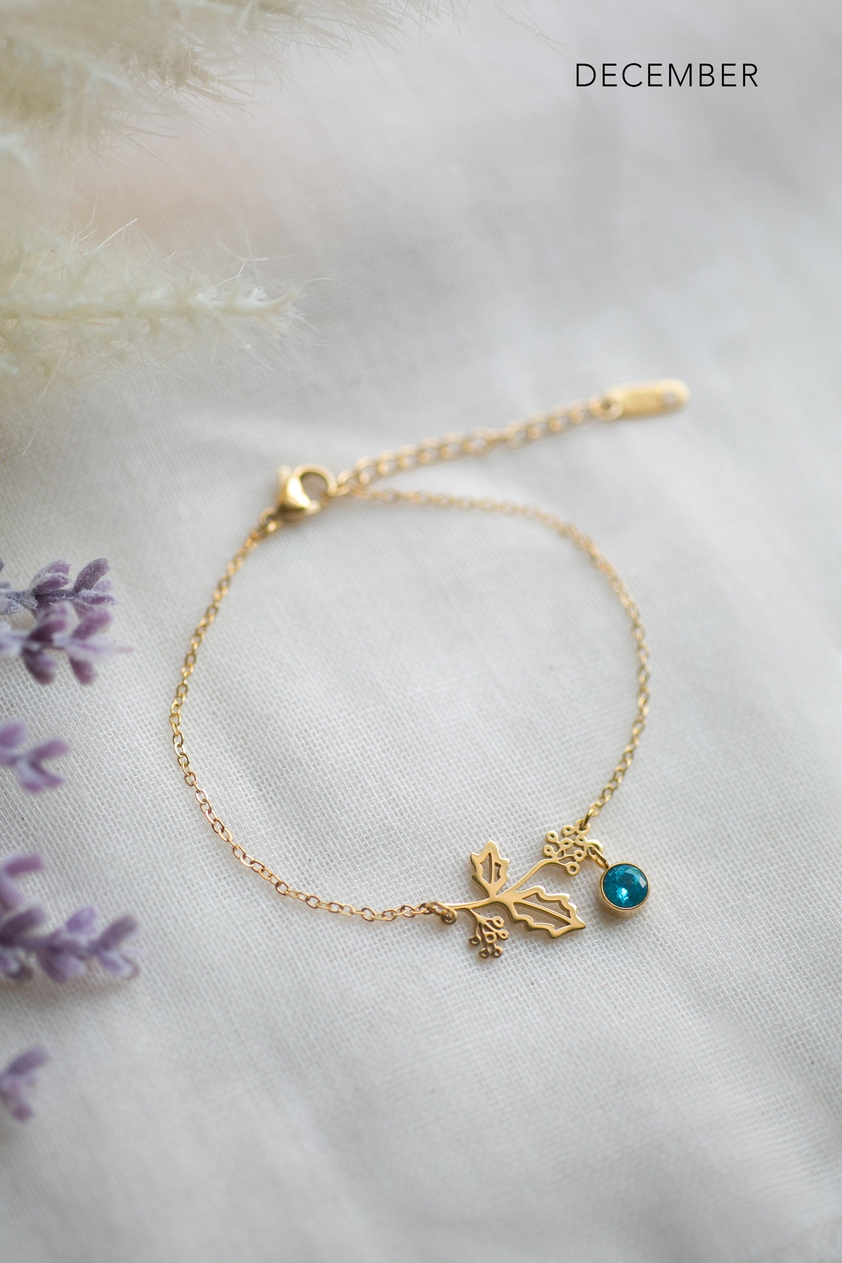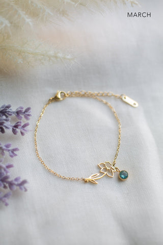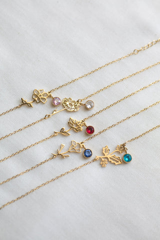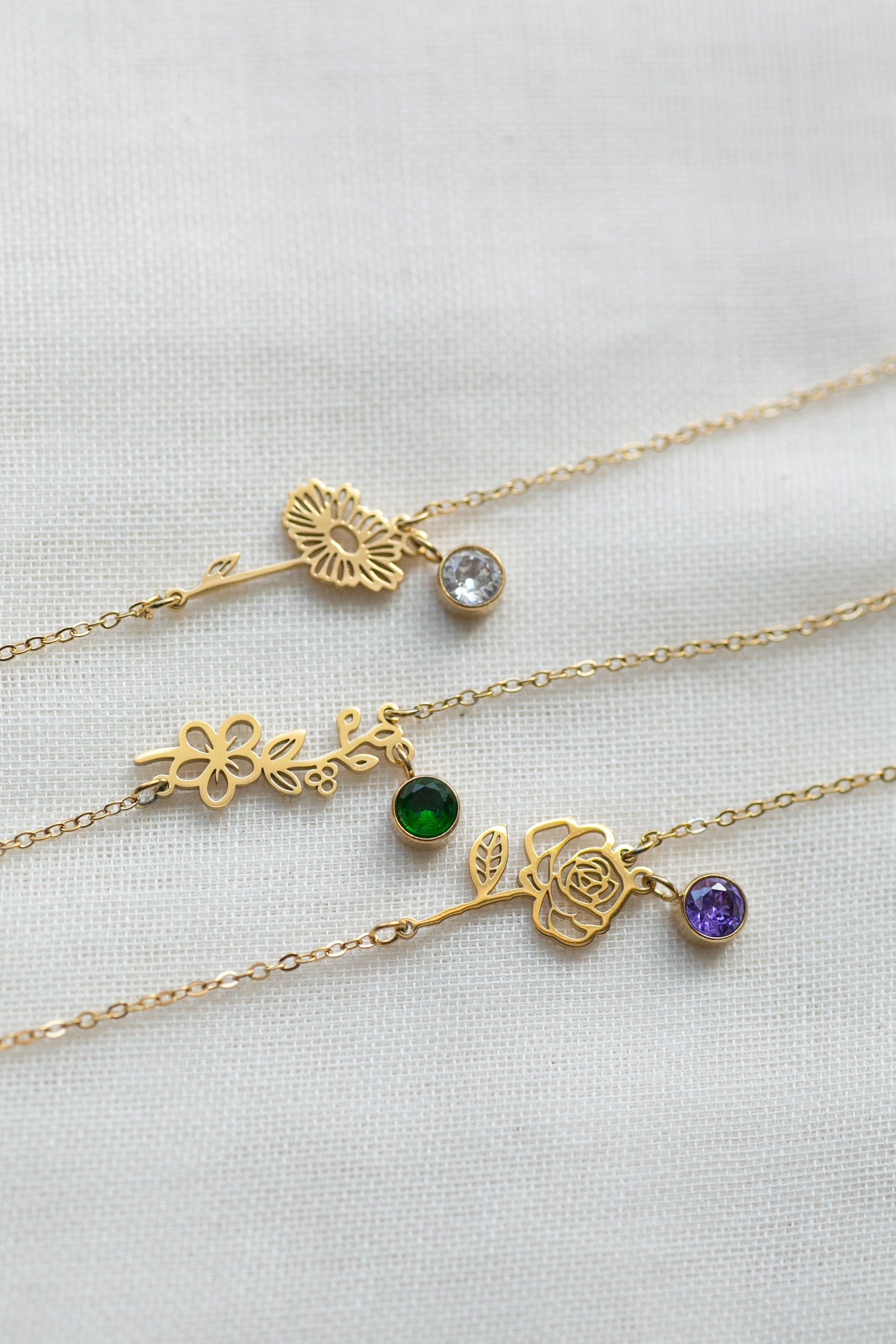 The prettiest dainty birth flower bracelet, the perfect gift for someone special! Featuring each month's birth flower accompanied by a sparkly CZ birthstone charm.