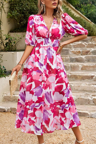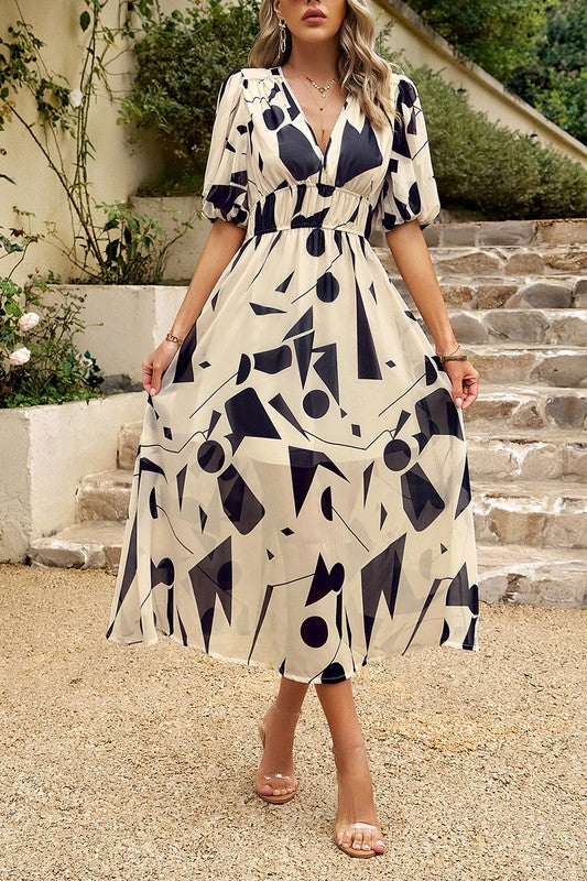 Love Kuza Bold Prints Puffy Sleeves Midi Dress – Roxie's Picks