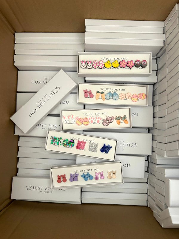 box of easter earrings exactly as picturedlight weight earrings comes with a top to the box