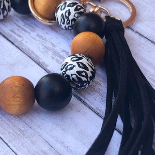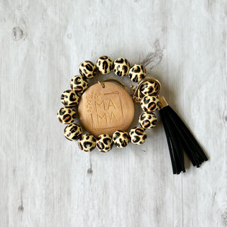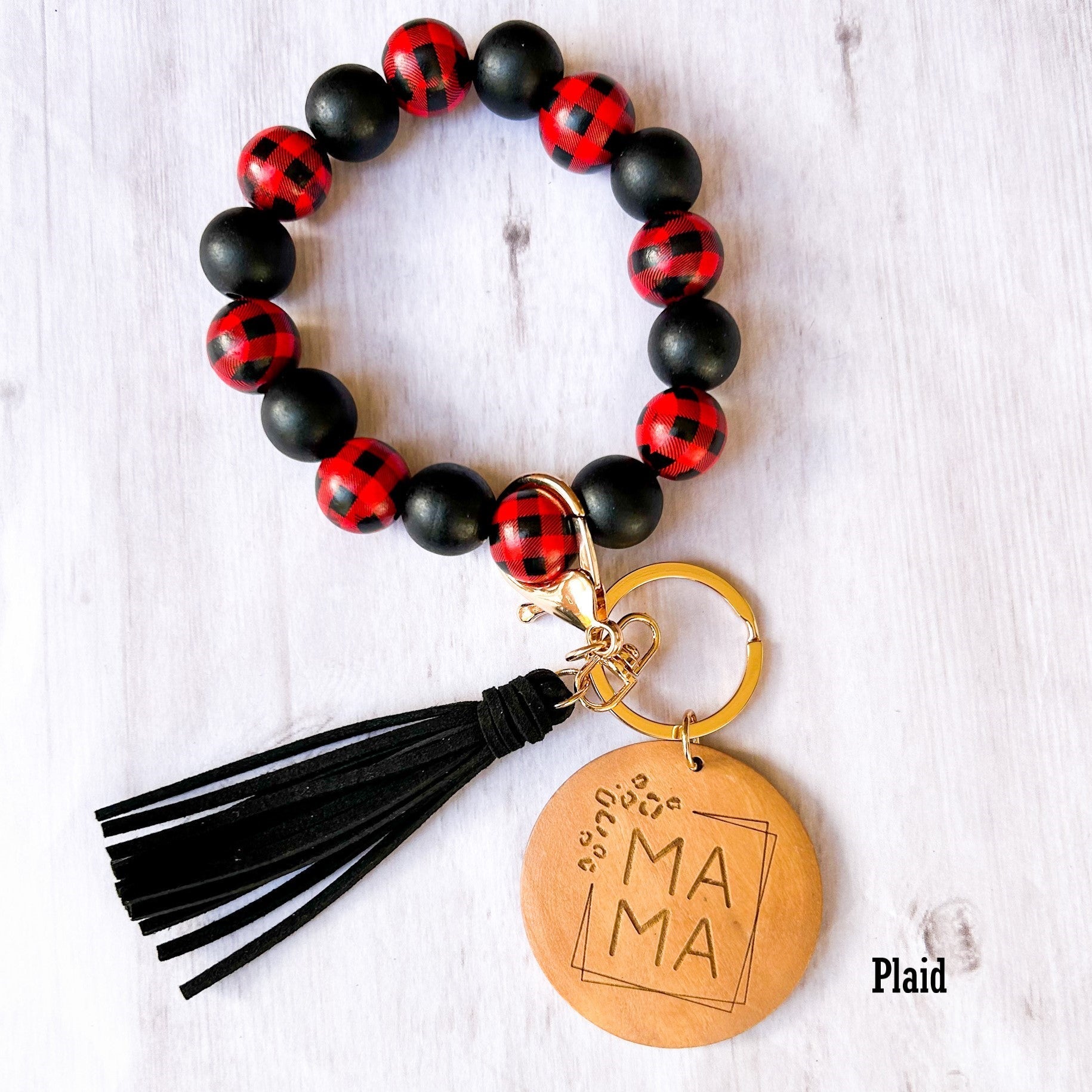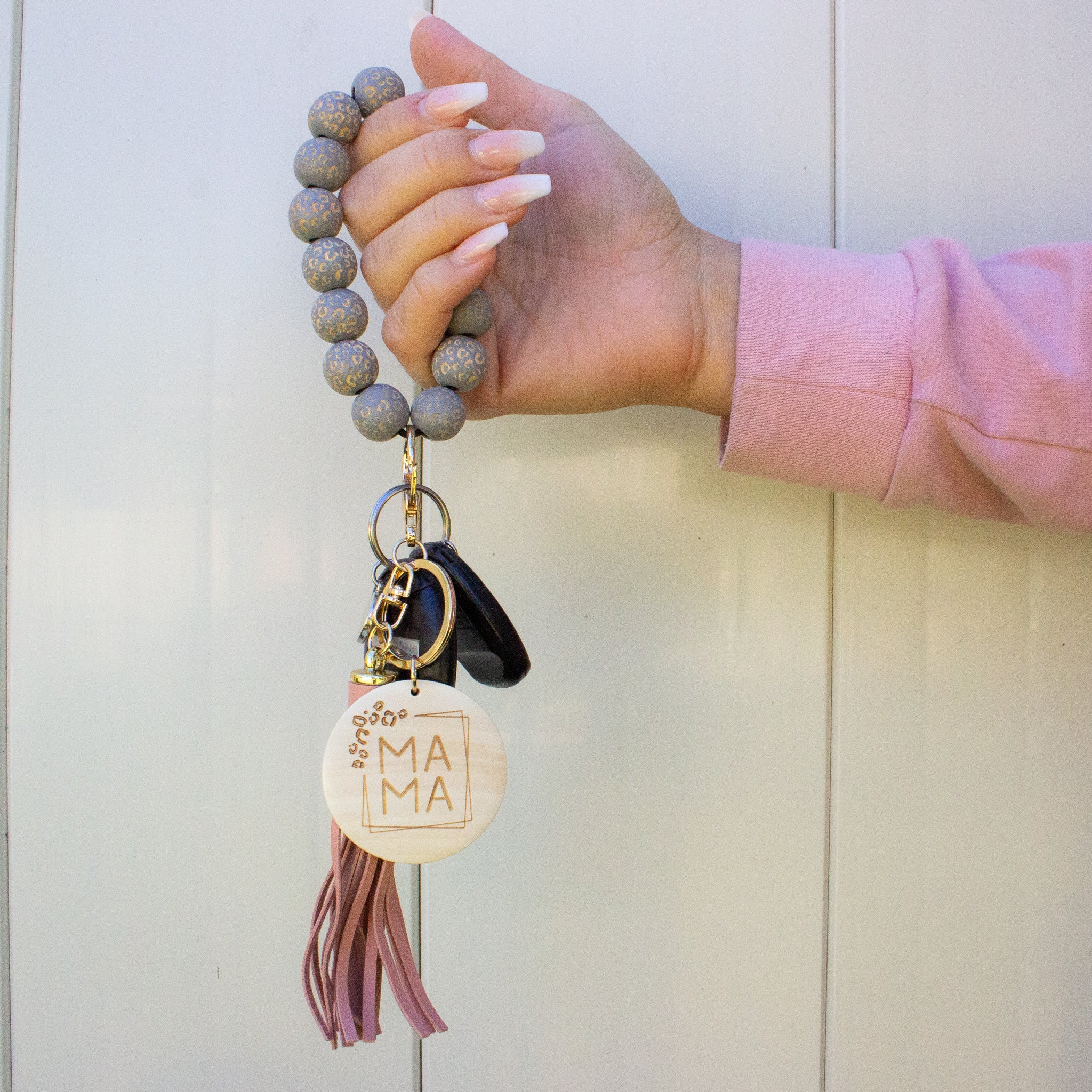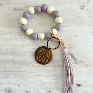 Place the wooden bead wristlet around your wrist and have easy access to your keys whether you're on the go, have a baby on your hip, or your hands are full of groceries!