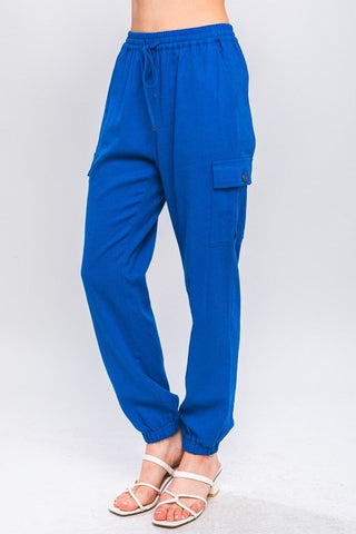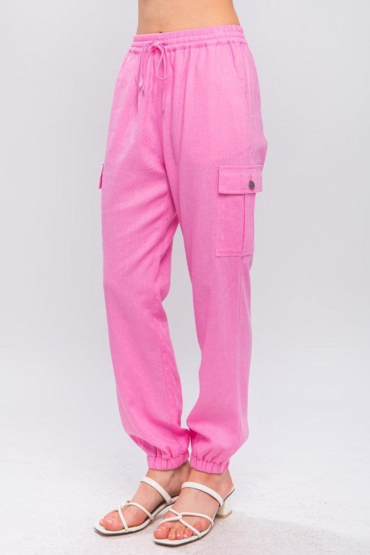 Comfy meets cool in these Cargo Jogger Pants in fun colors that feature drawstring elastic waist and side pockets.