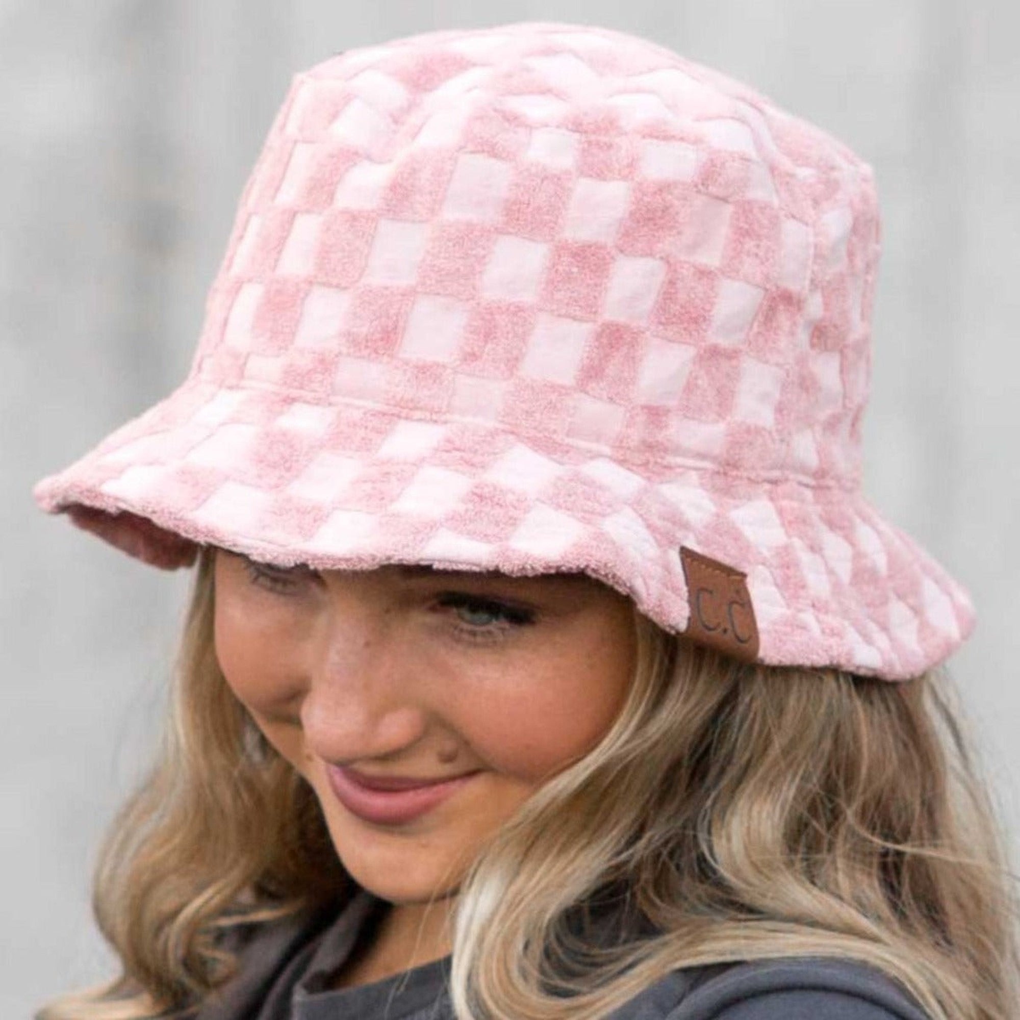 This popular checkered pattern is even better in CC's designer comfy terry cloth. The adjustable strap gives it a perfect fit every time. Keep that sun off of you while hiking, at the beach, or wear it for a stylish day out shopping.