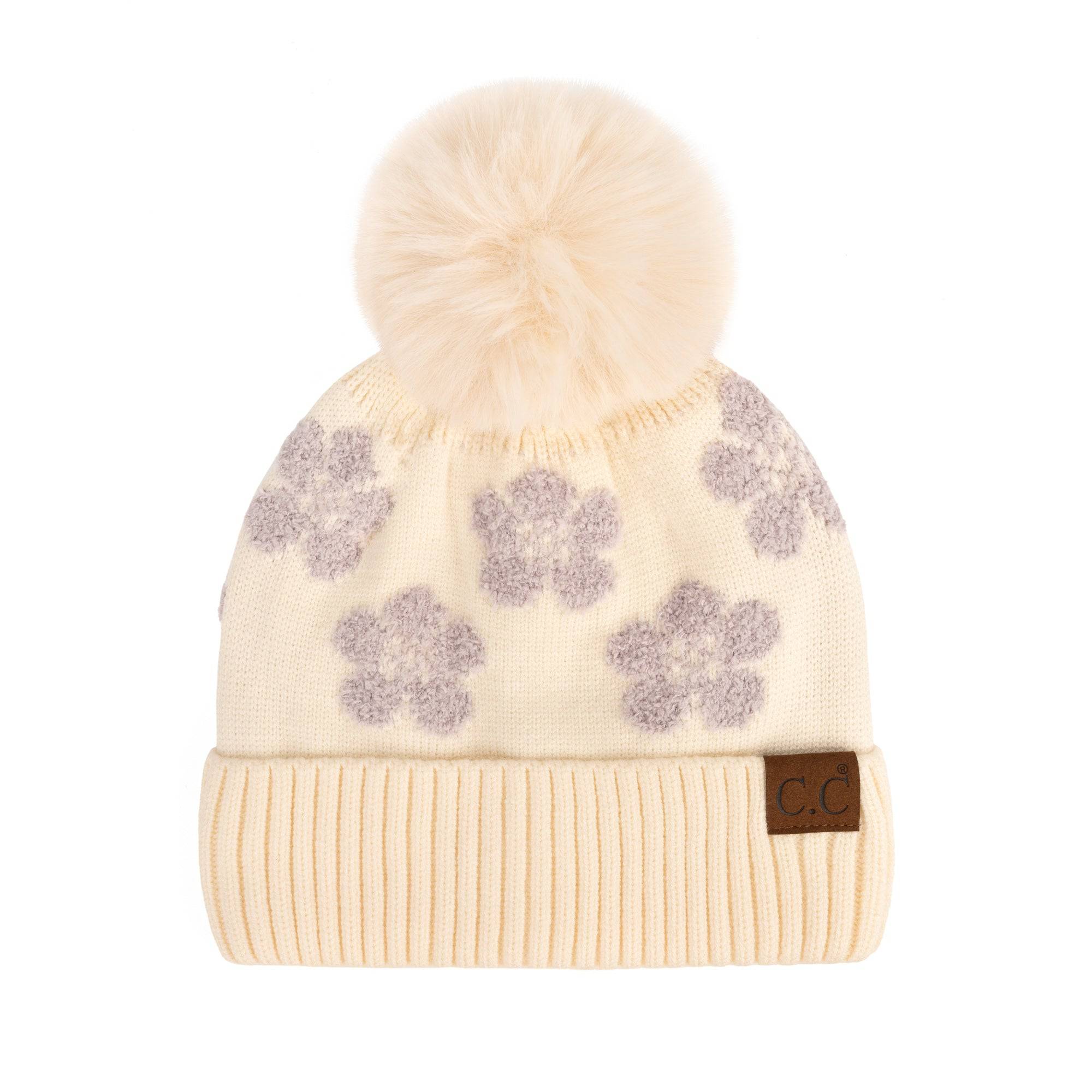This CC Chenille Daisy Pattern Beanie is the perfect combination of quality and style. Crafted with premium imported materials, this beanie features authentic C.C branding, a folded band for a slouchy or fitted look, and a plush pom for an added touch of luxury. Simply use a hair dryer on cold air and brush with a small tooth comb to make the pom fluffy. Soft, warm, and stylish - this beanie has it all! Made with premium imported materials, and featuring authentic C.C branding - this beanie is the perfect mix of comfort and fashion. With a foldable band for a slouchy or fitted look, and a plush pom for added elegance, you'll be turning heads wherever you go. And the best part? You can easily fluff up the pom with a hair dryer and small tooth comb. Talk about effortless luxury!