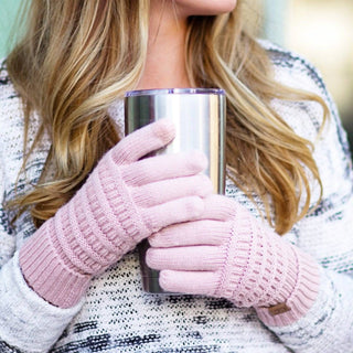 Stay stylish and connected wherever you go with CC Metallic Touchscreen Gloves! Crafted with metallic detail and authentic CC® branding, these gloves look great for outdoor activities and fashionable events. Practical and warm, you can conveniently scroll your phone with the touch of your fingertips - perfect for any season. Enjoy the cozy cable knit design and keep your hands warm in any weather. Get your CC Metallic Touchscreen Gloves today.
