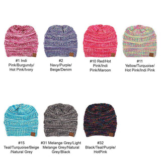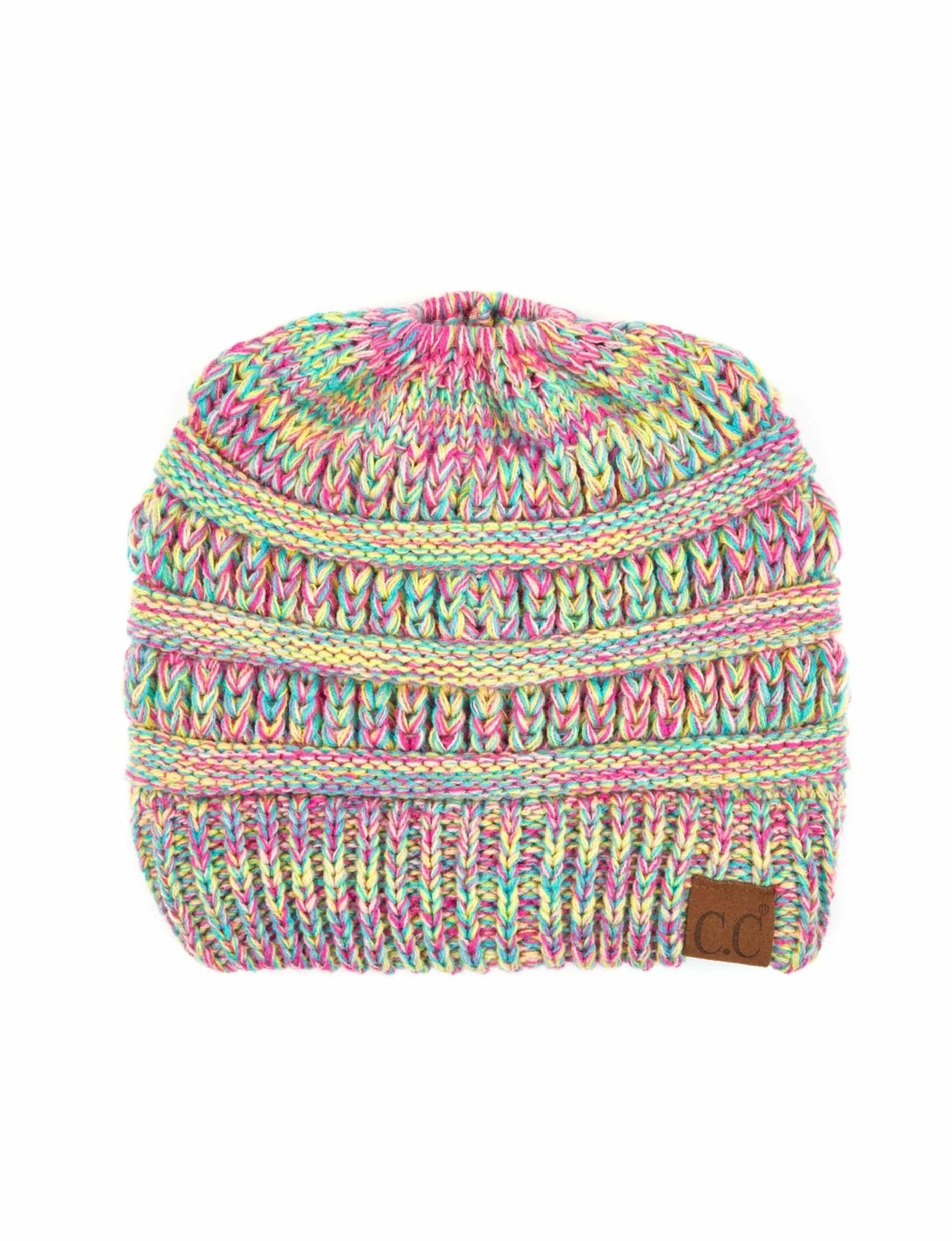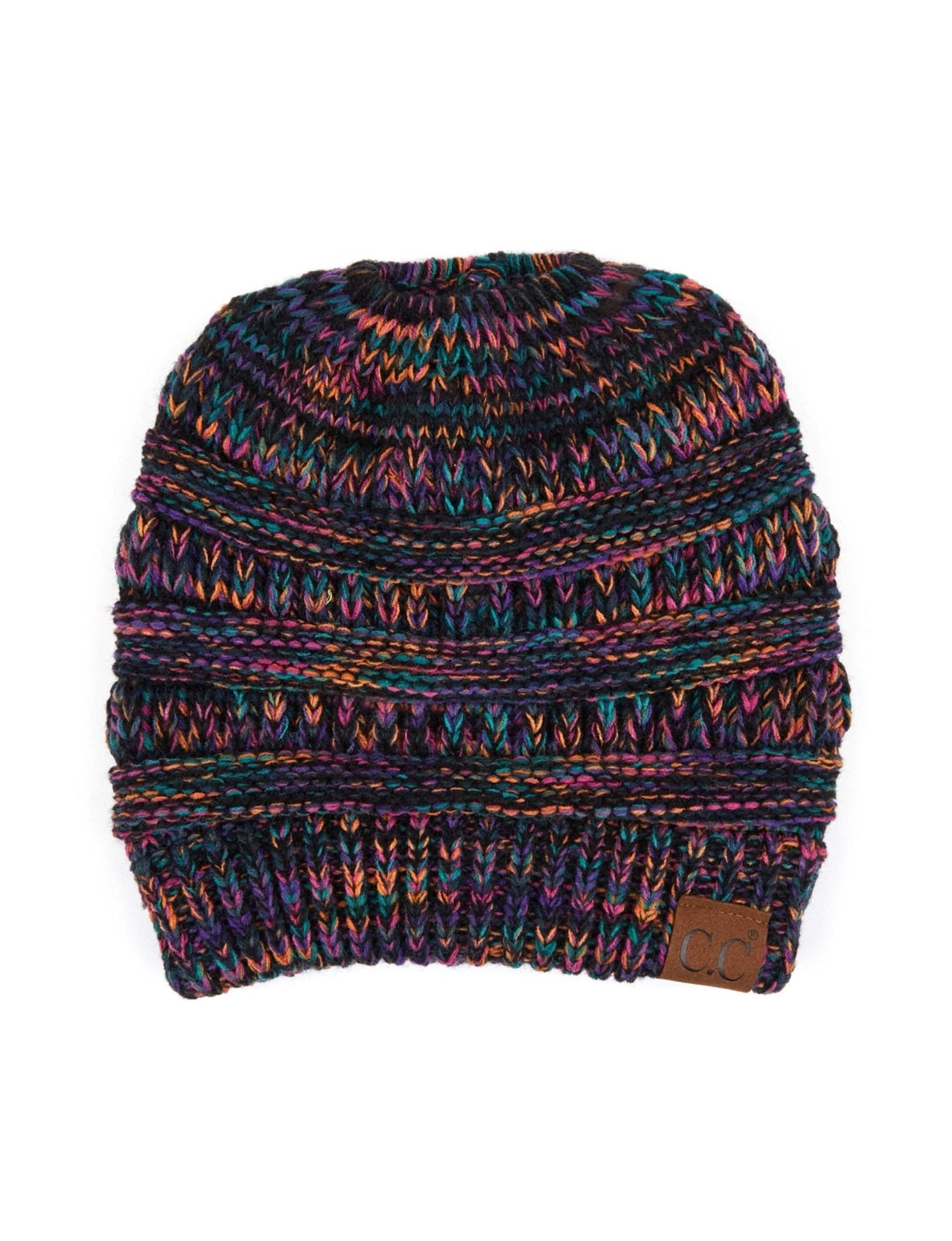 Be cozy all season with the C.C Crafted Multi-Toned Bun Beanie! This stretchy beanie is perfect for your top knot, bun, and ponytails - plus you can keep your hair down and still stay warm. It's made with quality C.C. Branding and comes in a multi-colored homespun pattern that is sure to turn heads. One size fits older kids to adults, so you can look and feel your best on the chilliest days. Get your beanie now and experience all-season comfort!