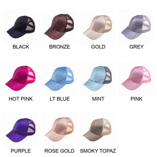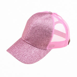 Stay stylish and comfortable in this special CC Glitter Women Teen Size Ponytail Ball Cap Hat! Featuring a glitter pattern, a ponytail opening, a hidden adjustable hook and loop strap, and a mesh back, this six-panel cap offers fashionable design and the authentic CC® brand quality you trust. With an adjustable fit, this cap offers two sizes. The 60% cotton & 40% polyester construction, this cap has Truly Contagious support and an irresistible sparkle you'll love! Check sizing so you can order one for the entire family - these hats fit toddlers to adults!