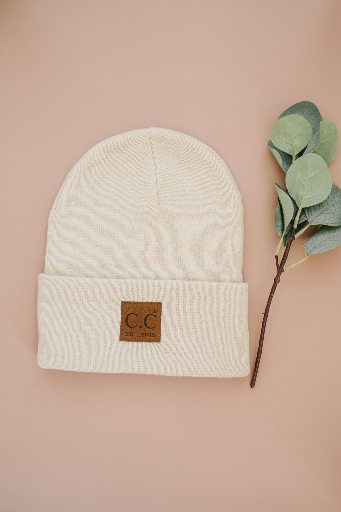 - Folded band allows for product to be worn slouchy or roll it up for a more fitted look. The C.C Brand is on both sides of the tag.