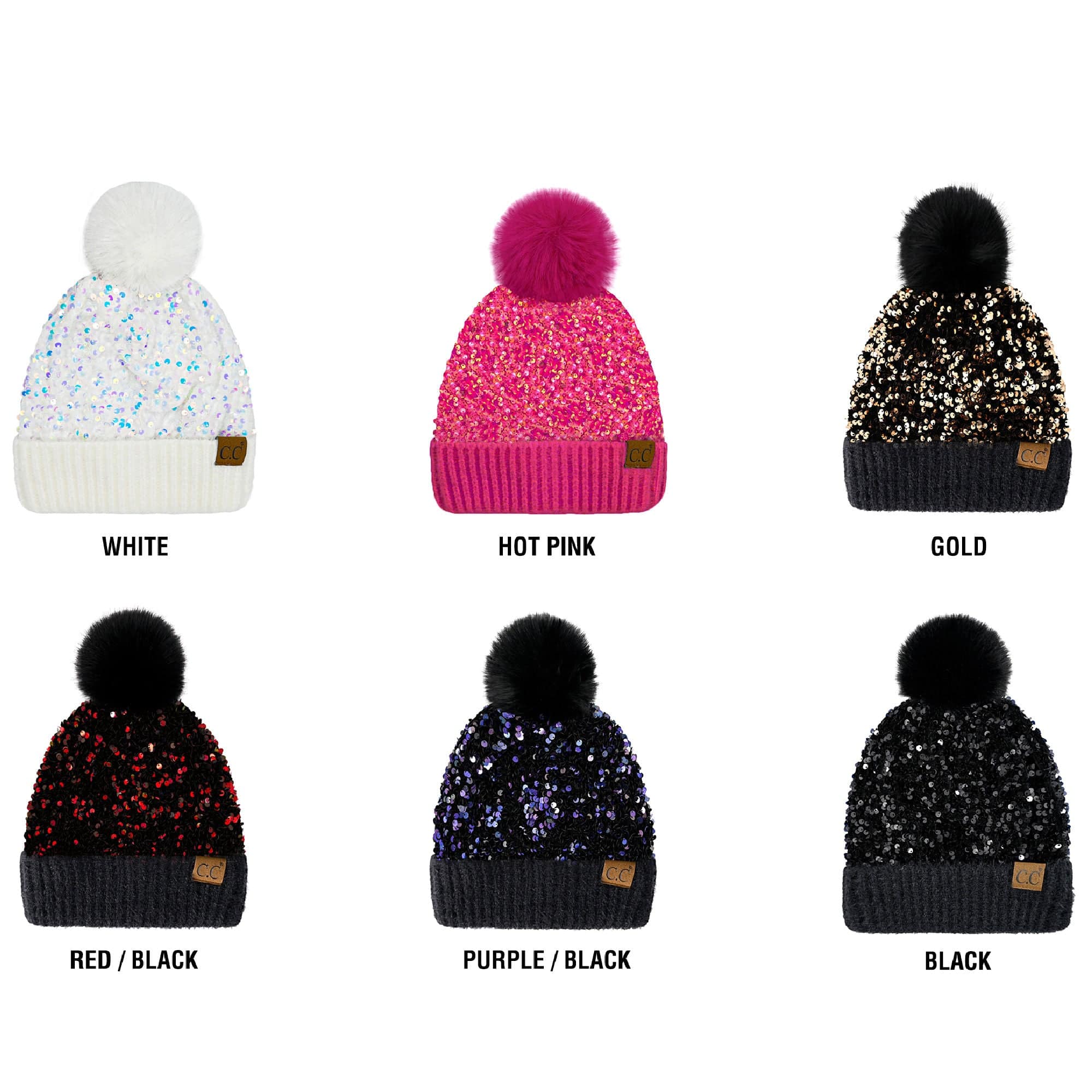 Add some sparkle to your look with this ultra-soft CC Sequin Fur Pom Beanie! This stylish hat is designed with a 4 3/4" quality faux fur pom on top and a fashionable sequin material that will make you stand out wherever you go. Perfect for winter days and nights and available in both adult and kid’s sizes. Get ready to shine!