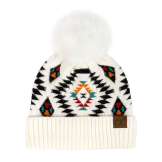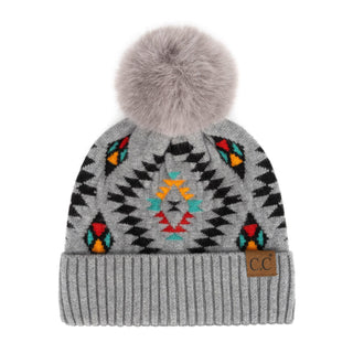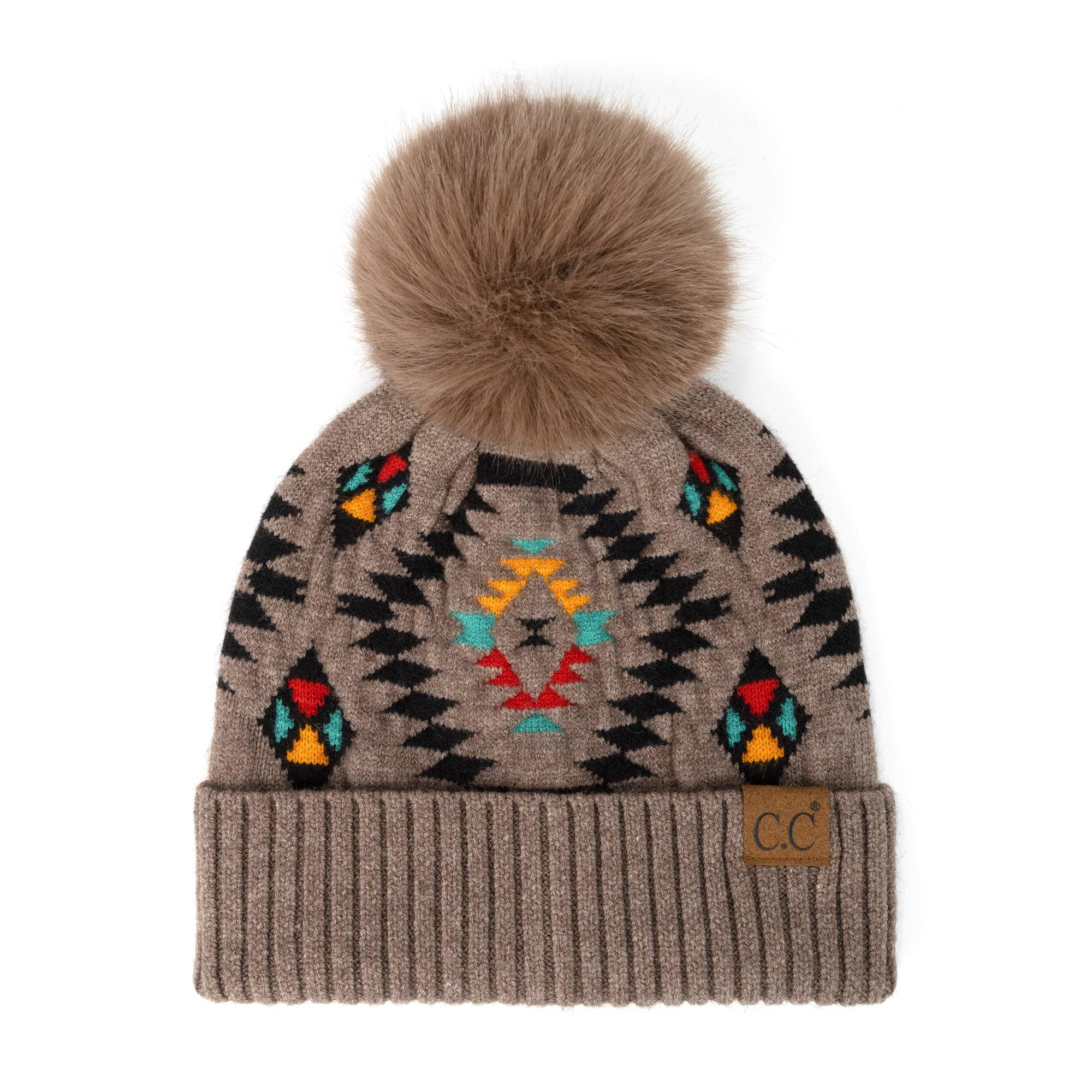 Our CC Southwest Print Beanie is the perfect accessory to add a touch of luxury to any ensemble. Crafted with superior quality faux fur and authentic C.C.® Branding, this stylish beanie boasts an exclusive Aztec pattern that will ensure you look chic and sophisticated. Get the full effect of this luxurious piece by using a hair dryer and comb to fluff up the faux fur pom, and enjoy the cozy warmth of the winter season in style.