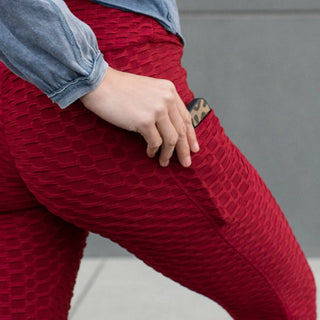 Our Cellulite Hiding Leggings w/Pockets are designed to provide maximum comfort while masking the appearance of cellulite and imperfections. The textured fabric also serves to enhance your curves and slim your silhouette. These leggings feature a pull-on closure, side pockets, and have been top rated for their fit and comfort.
