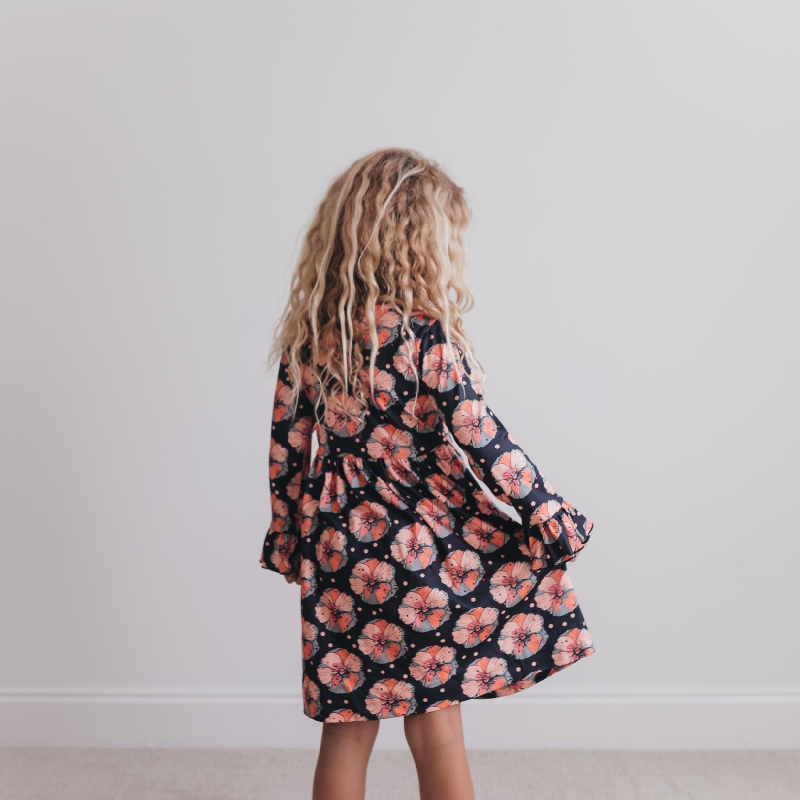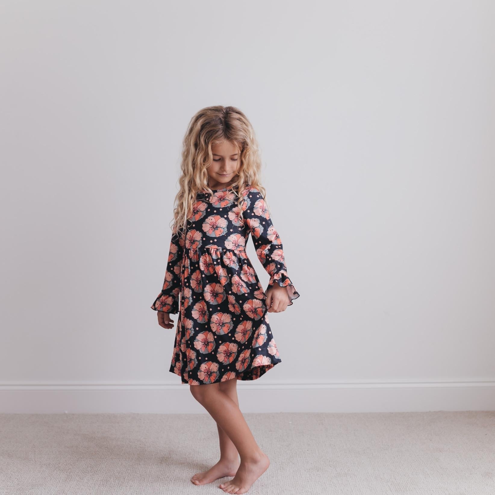 Girls black and Floral Print Flutter Sleeve dress. Cute Dress that's perfect for Easter, Spring & Summer fun!