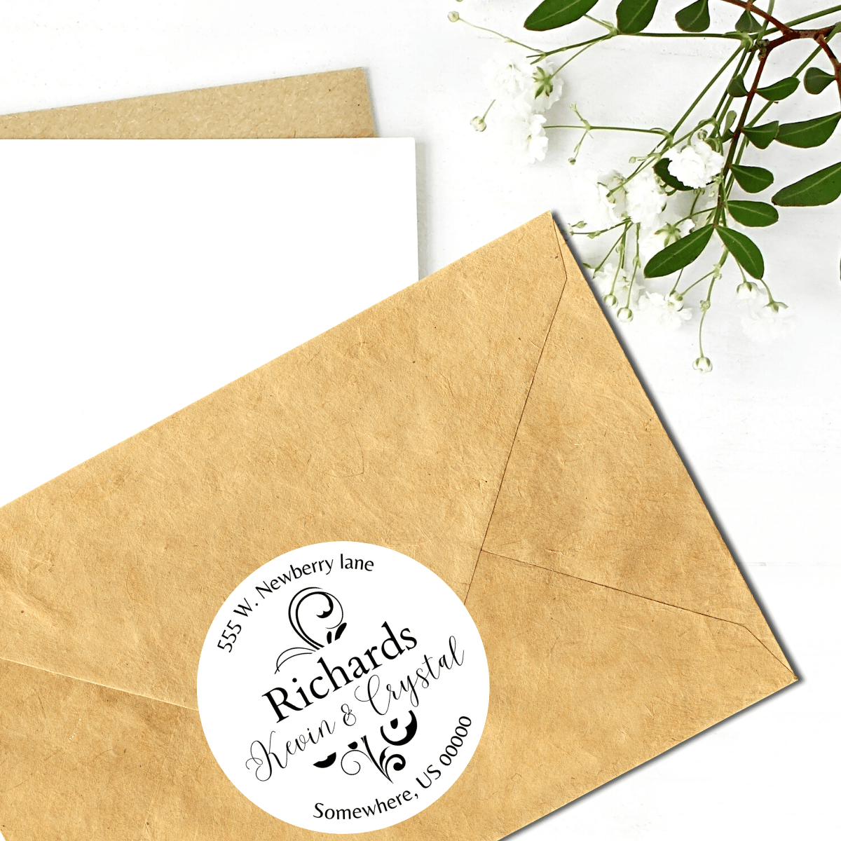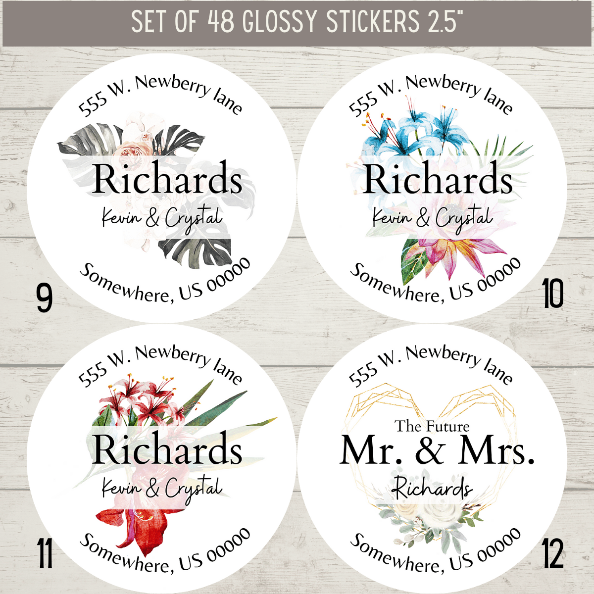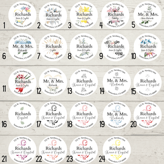 Make your day perfect, adding the finesse of finishing touches with our beautiful customized address labels. Simplify your life, worry less, and personalize more! No more getting writer's cramp filling out the "return address" on your envelopes. These are fabulous for weddings, bridal showers, and other special occasions, making your plain envelopes classy.