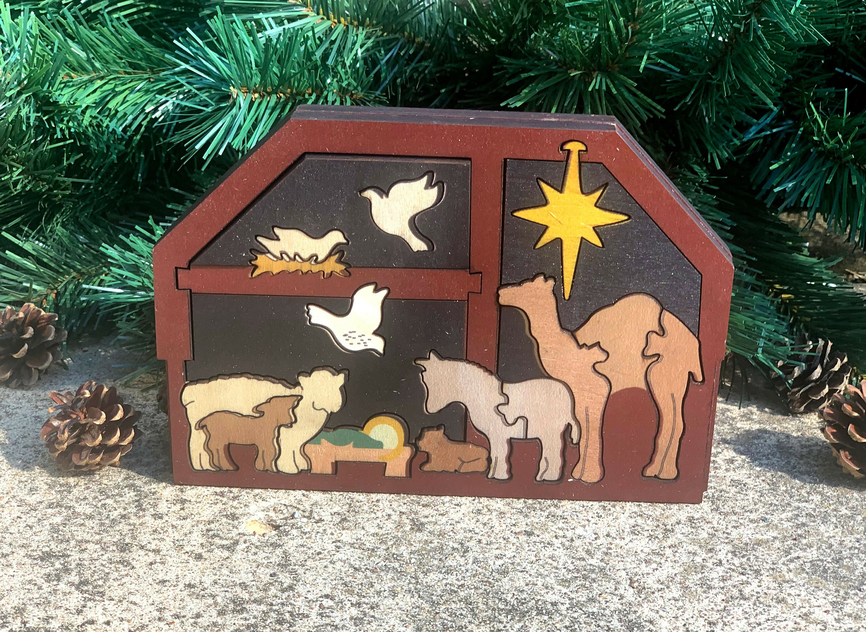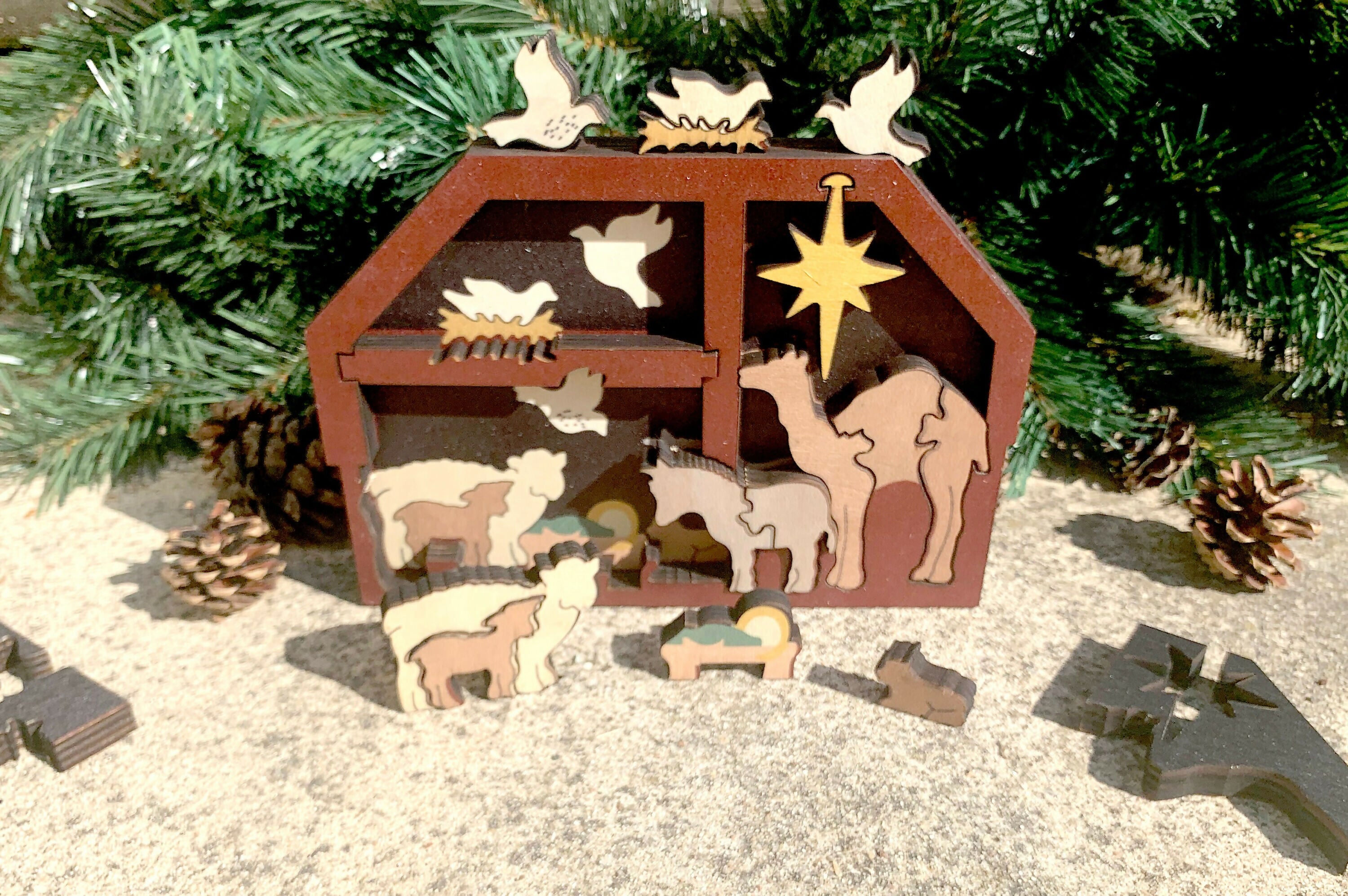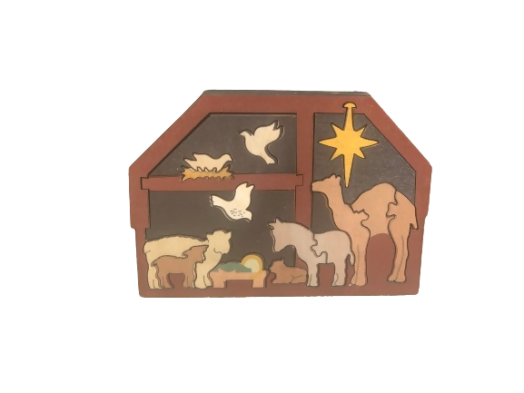 27 Piece Christmas Nativity puzzle. natural wooden cutout puzzle.