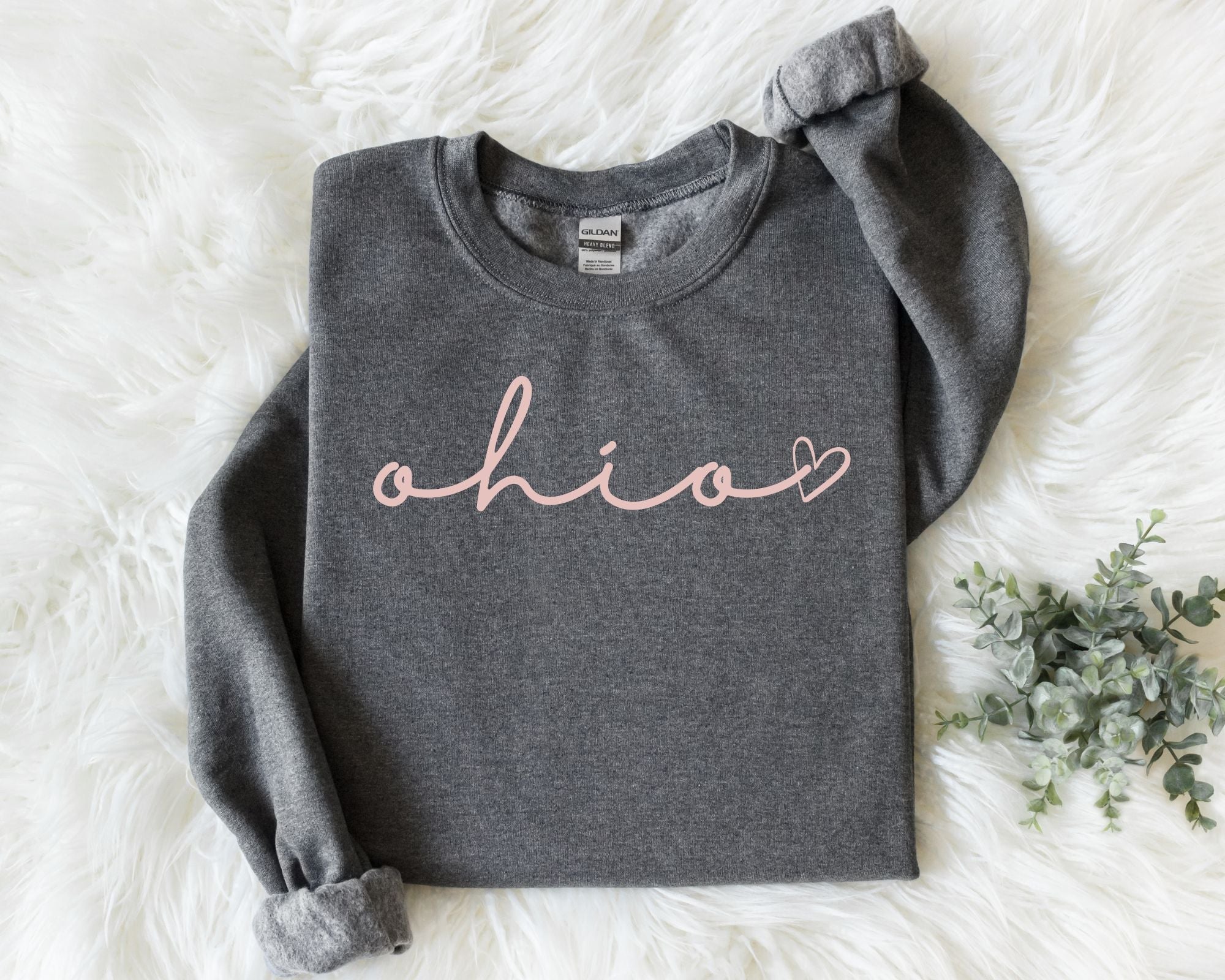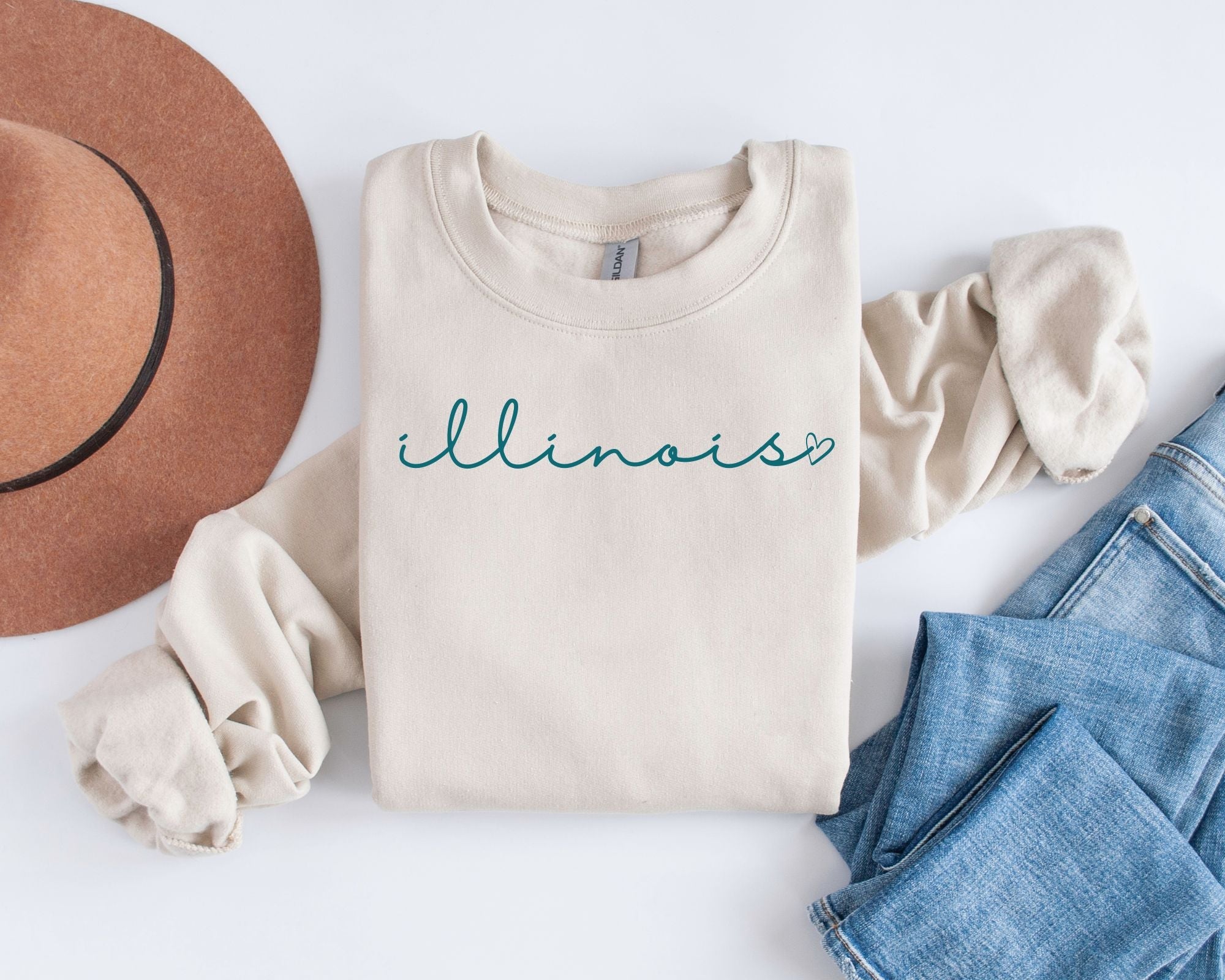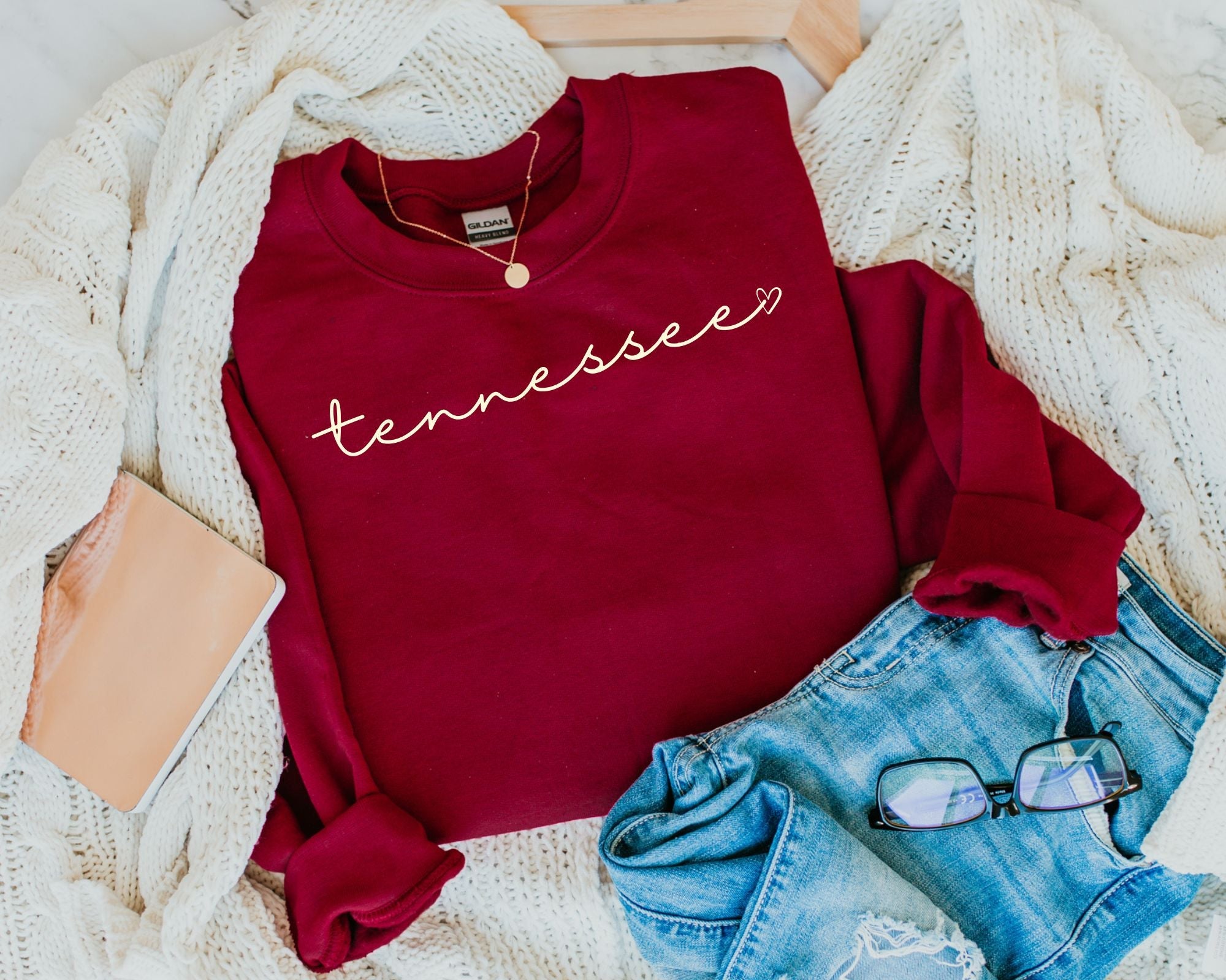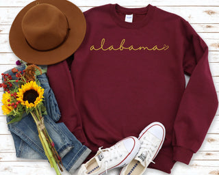 Show your love for your home state or a place that holds a special spot in your heart with this elegant and personalized sweatshirt. The standout feature of this design is the ability to customize it with your favorite state name, beautifully written in cursive.