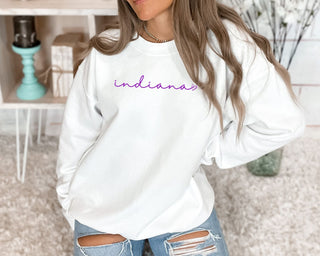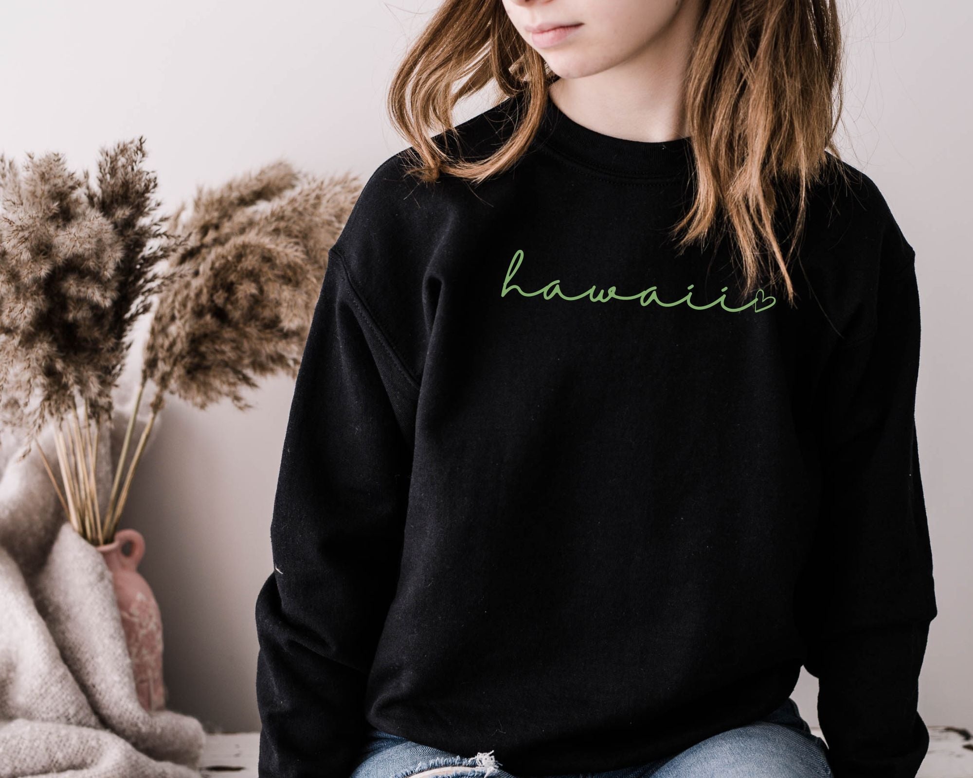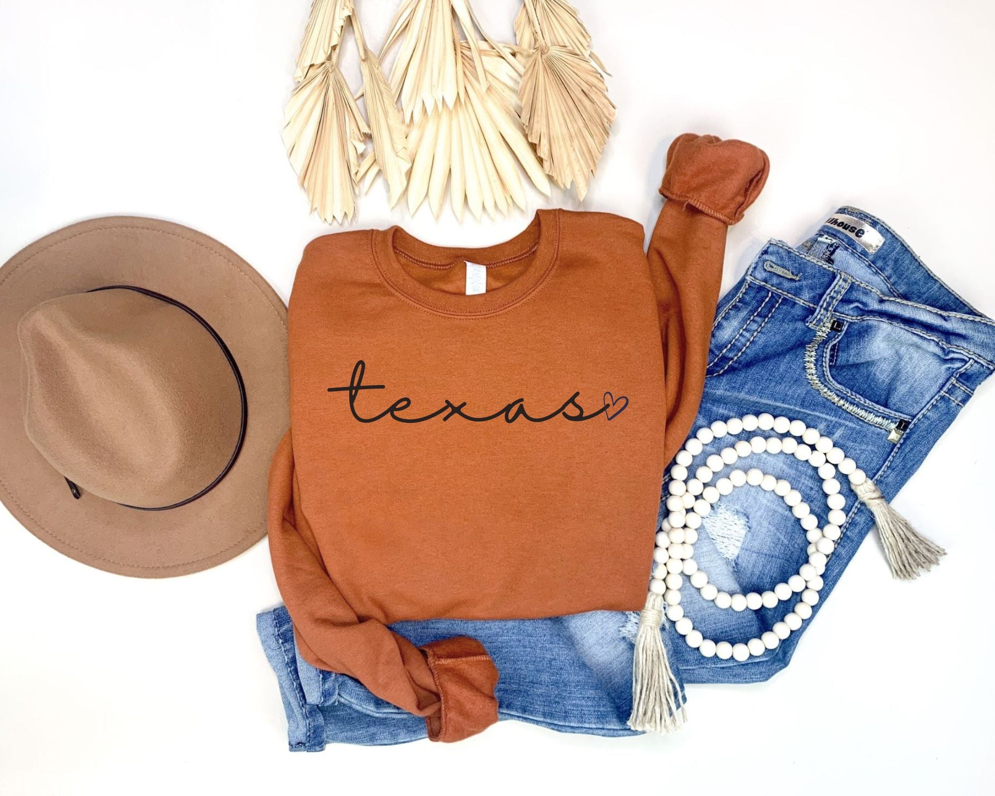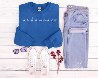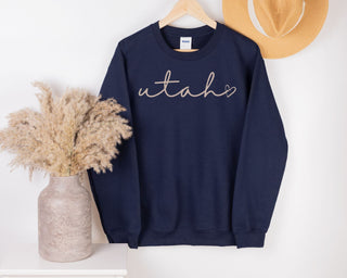 Show your love for your home state or a place that holds a special spot in your heart with this elegant and personalized sweatshirt. The standout feature of this design is the ability to customize it with your favorite state name, beautifully written in cursive.