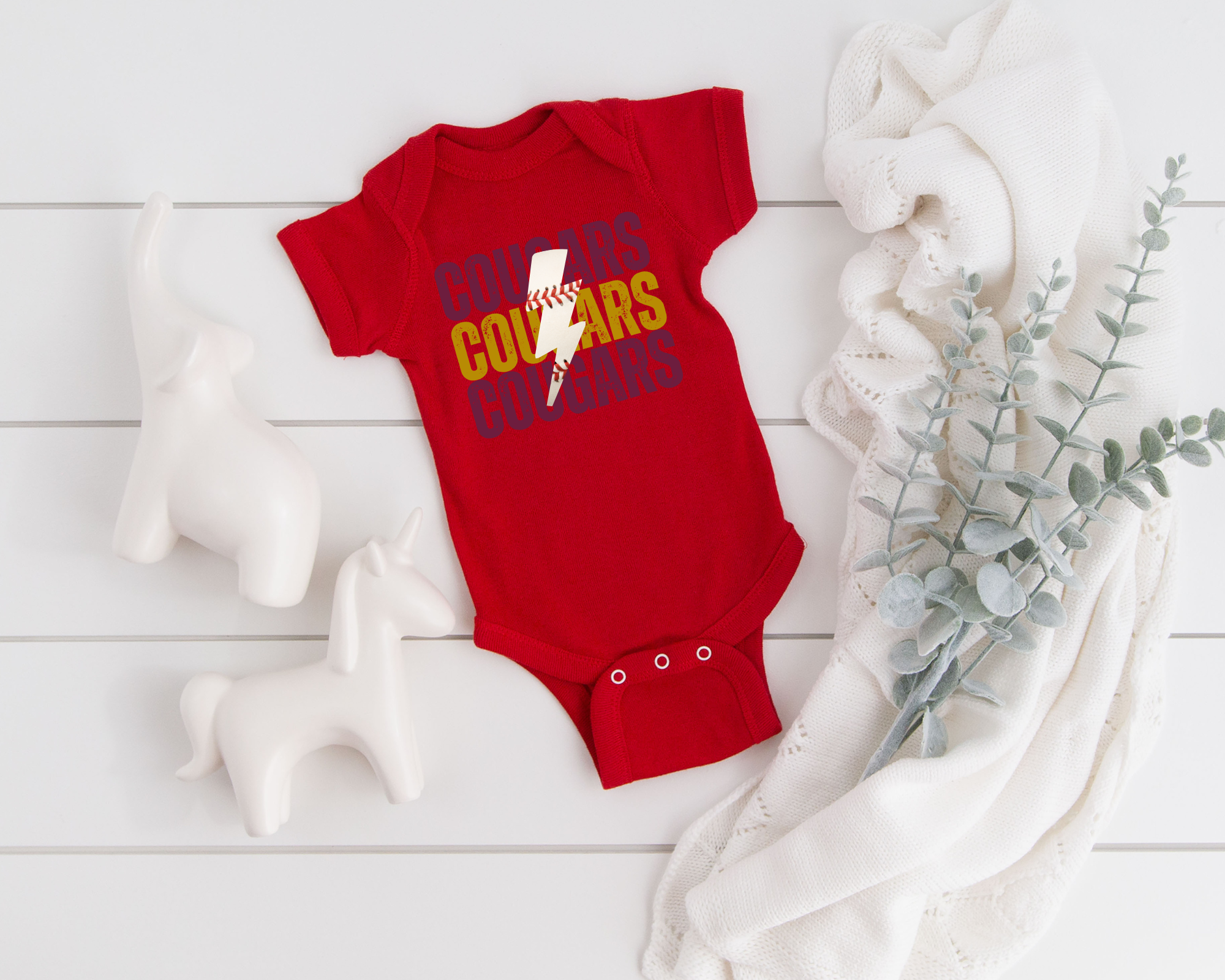 You may customize this bodysuit with your favorite baseball team, and choose two colors for the design.