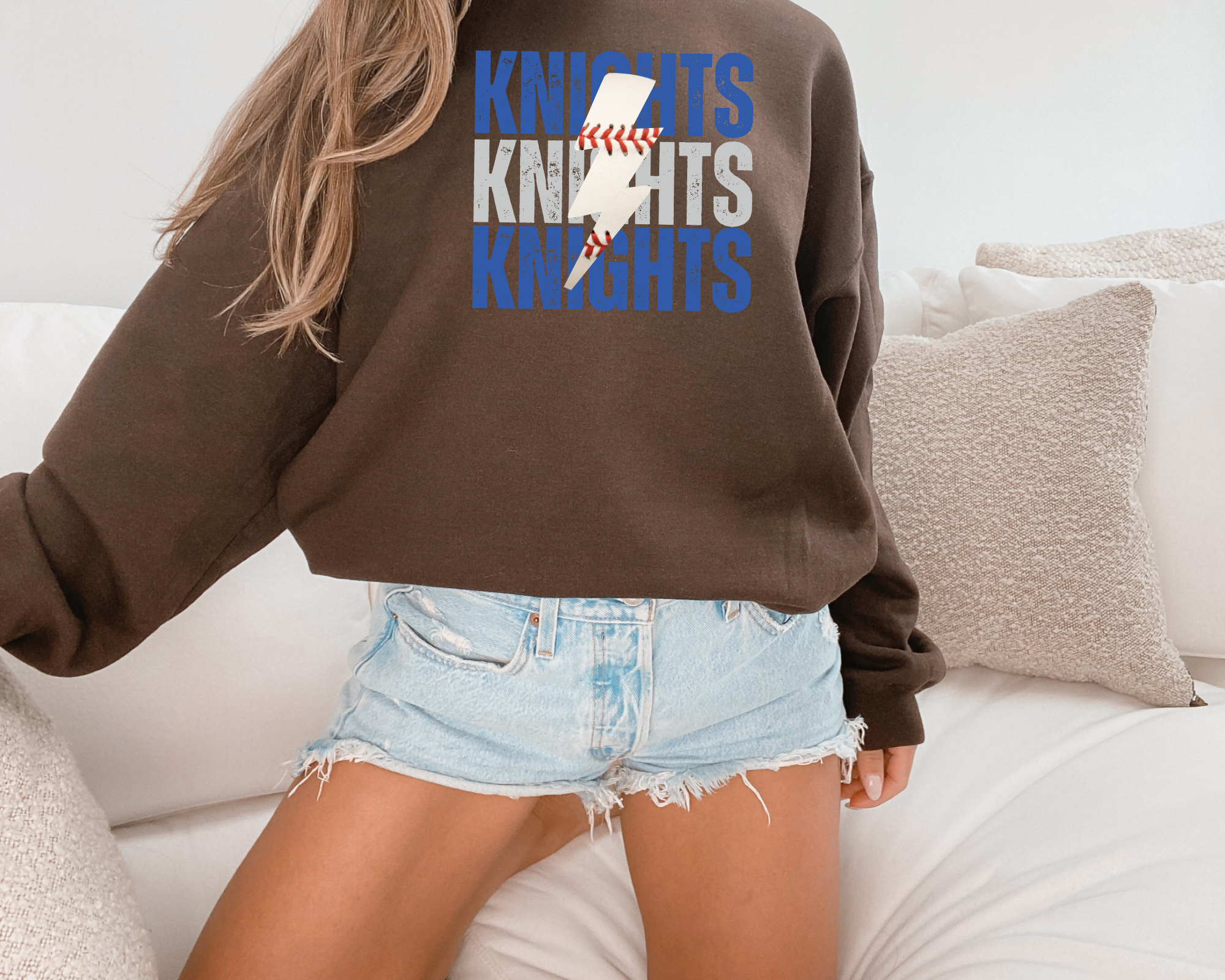 Elevate your baseball fan fashion with a striking lightning-inspired design. Personalize this sweatshirt with your team's name and choose two vibrant colors for the design, creating a garment that captures the energy and excitement of baseball.