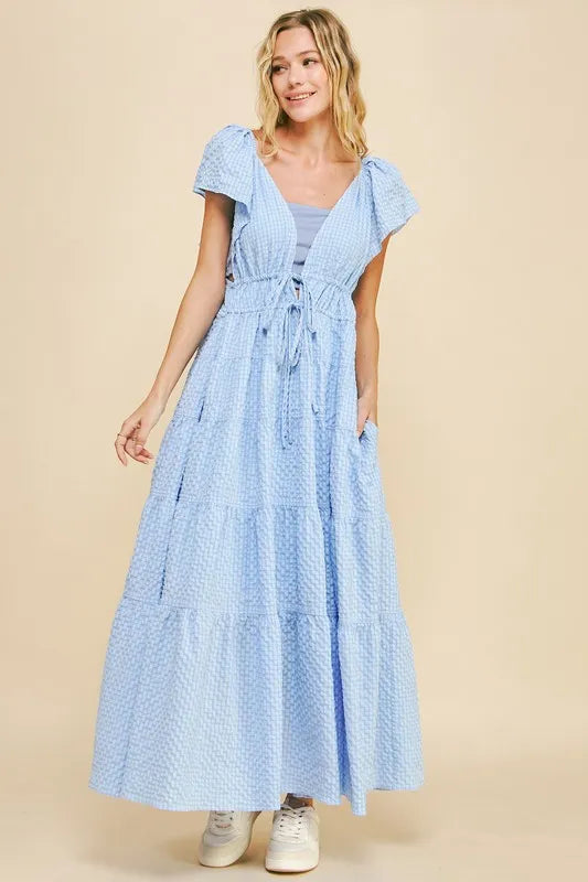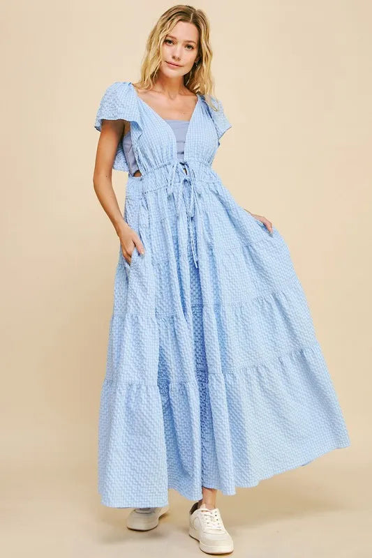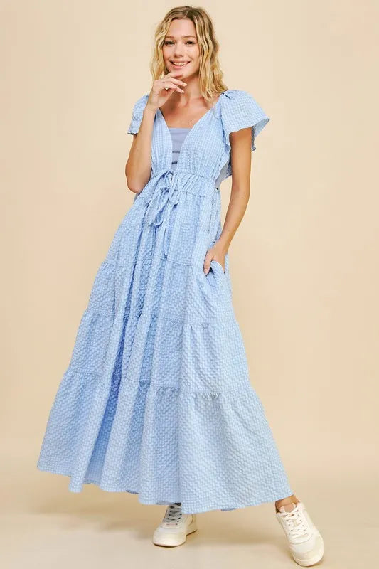Davi & Dani Crinkled Texture Flutter Cap Sleeve Midi Dress – Roxie's Picks