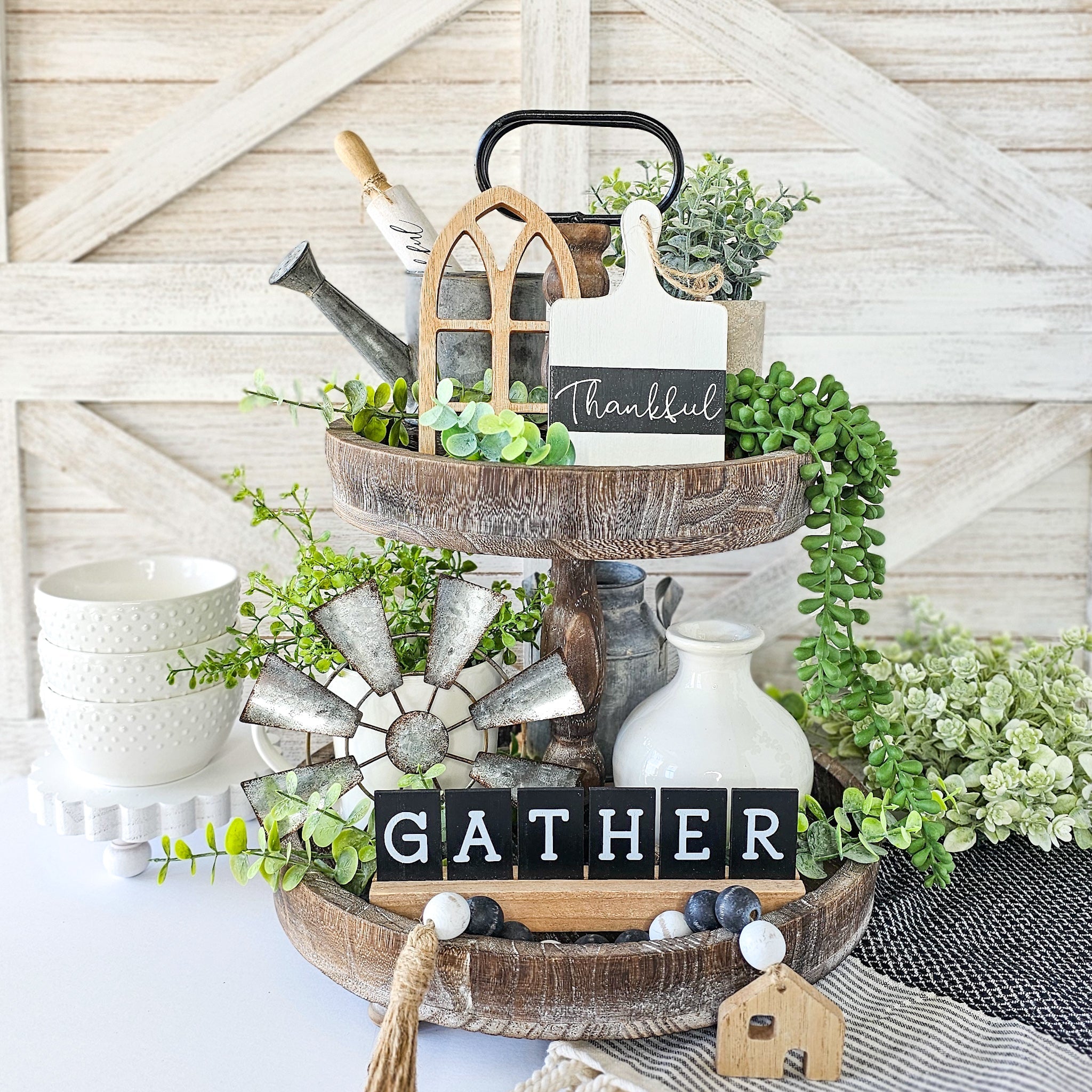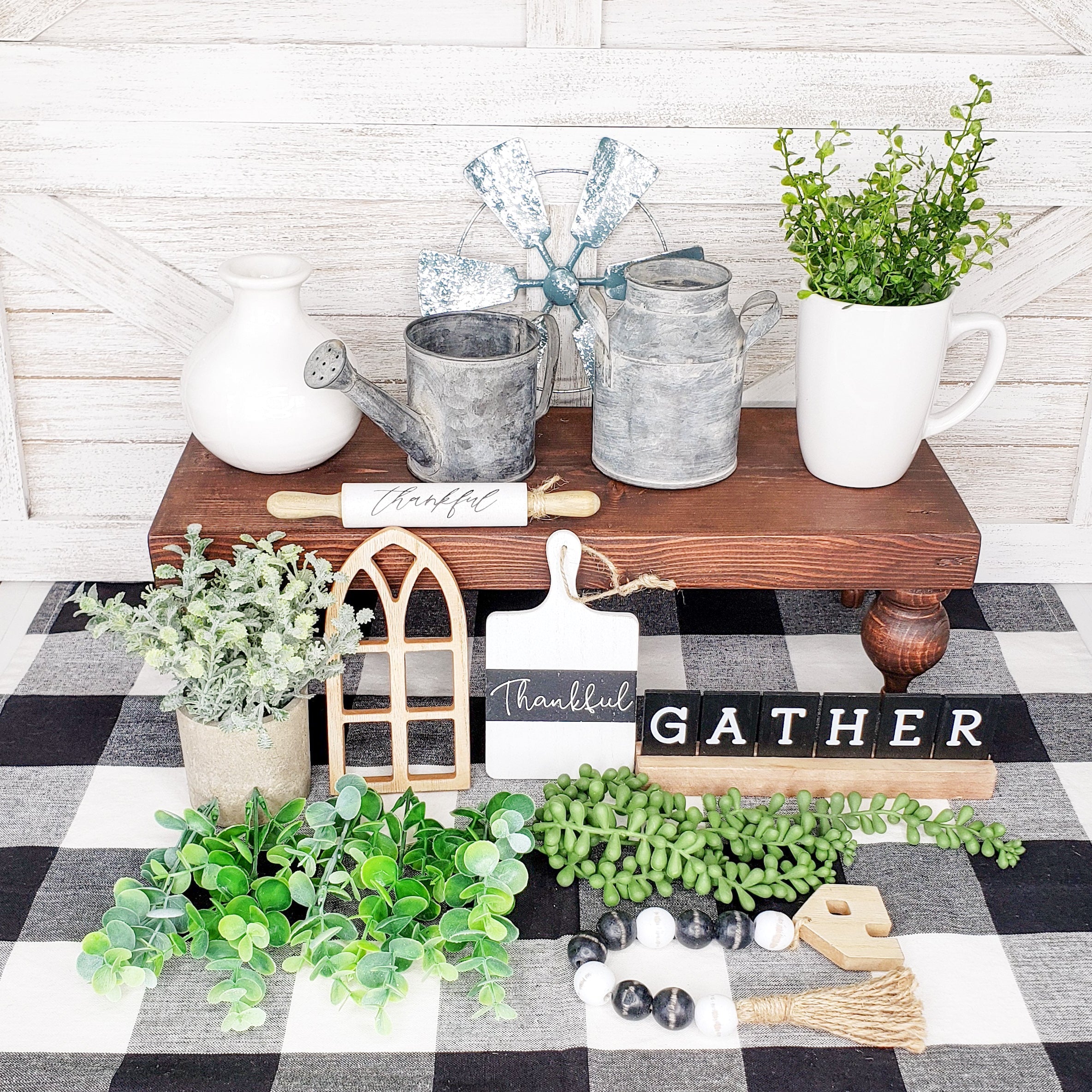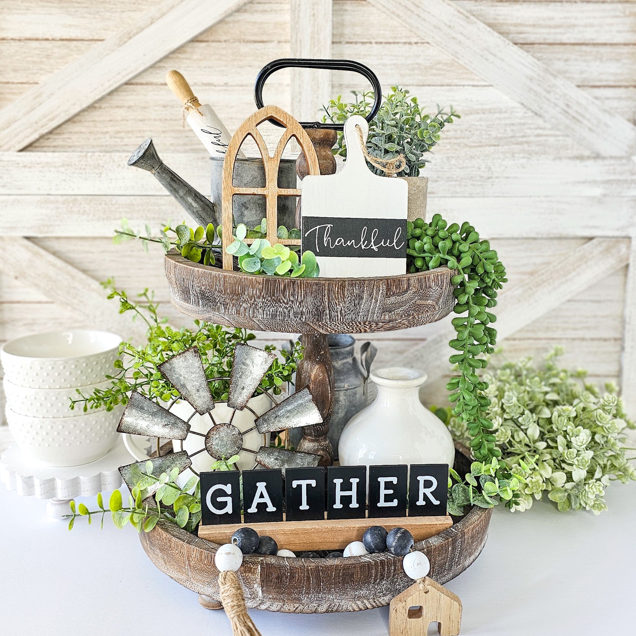 NOTE: The tiered tray and other items shown are for display purposes only and are NOT included in the decor set. Everything included is listed below. Sizes are approximate. Colors variations and styles may vary.