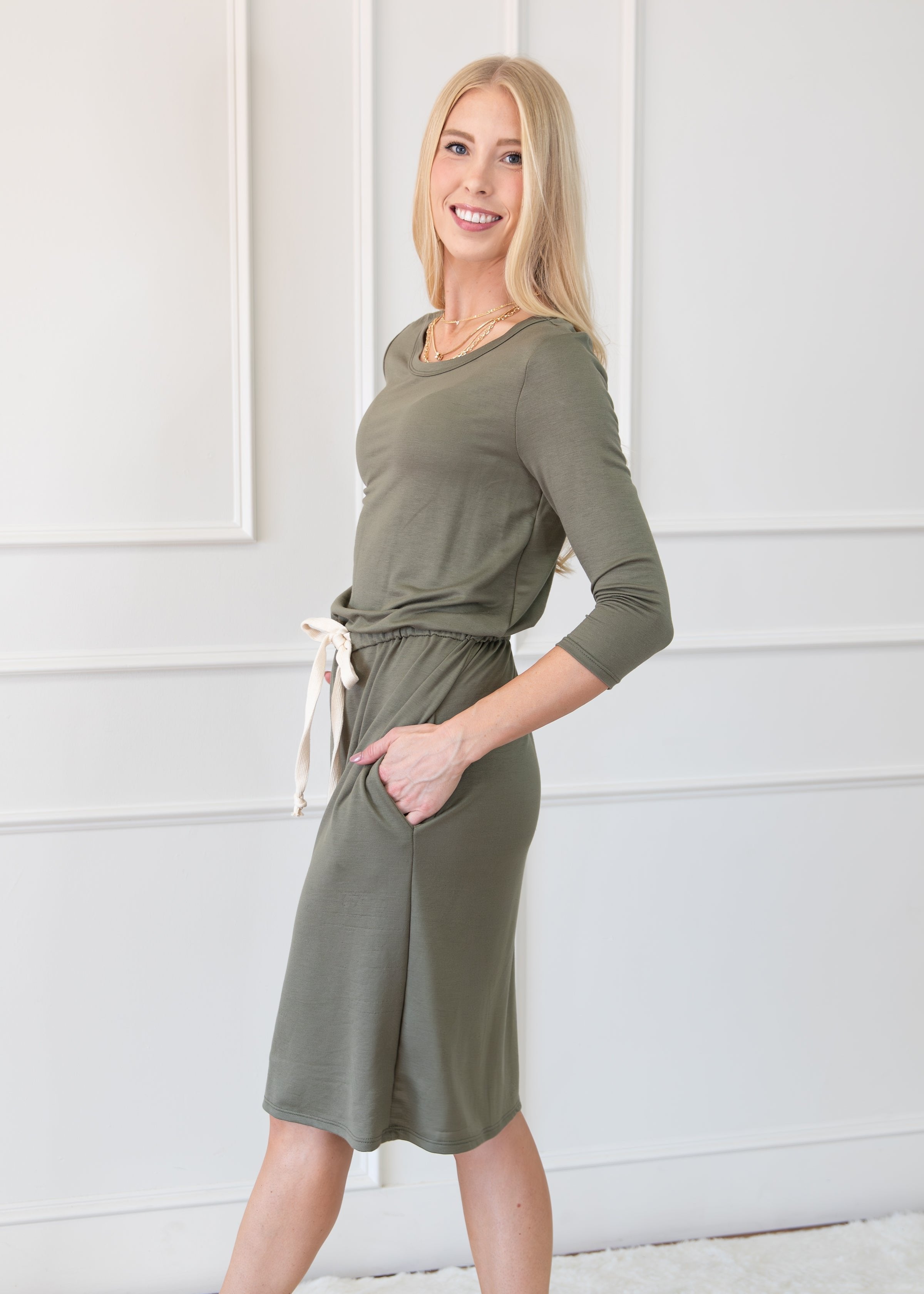 Discover the perfect balance of comfort and style with our Easy 2 Tone Waist String Dress! With an elastic and drawstring closure, you can easily adjust the waistline to your liking while also hiding any belly concerns. Plus, the hidden pockets add convenience without affecting the elegant skirted shape. Look and feel your best in this must-have dress!