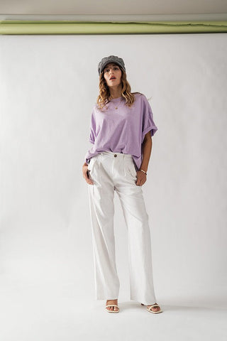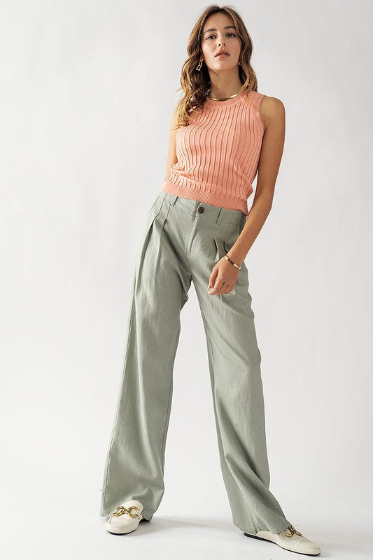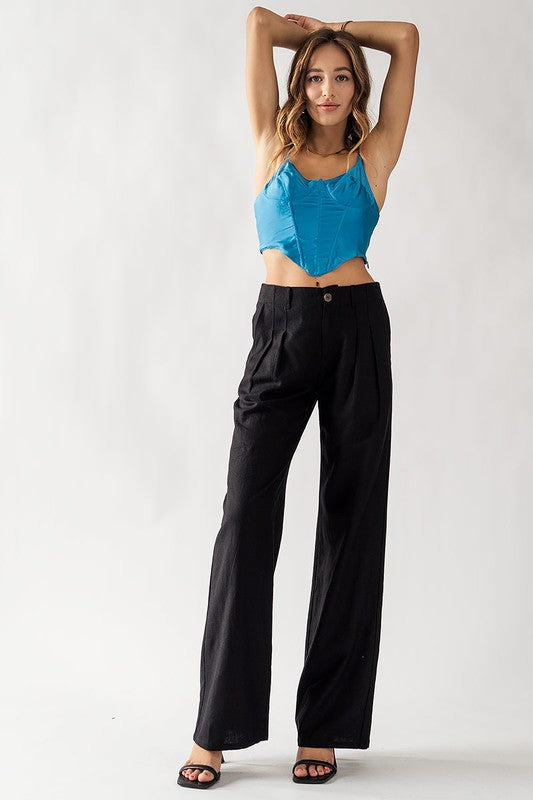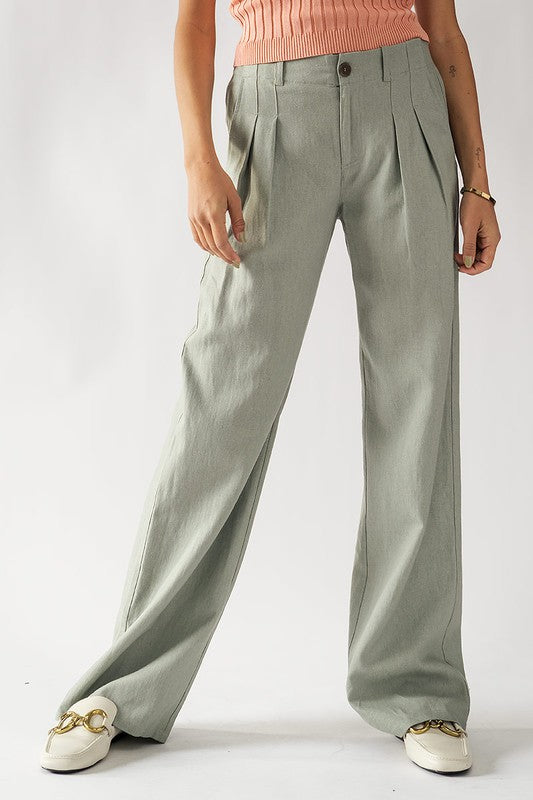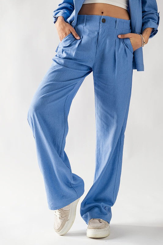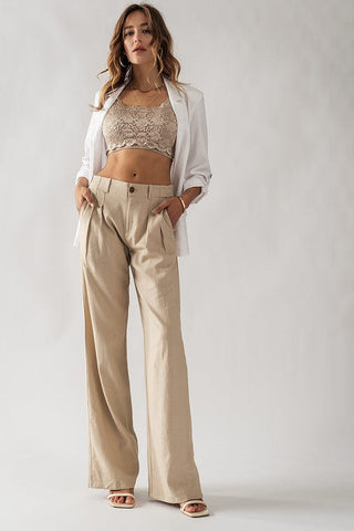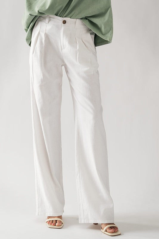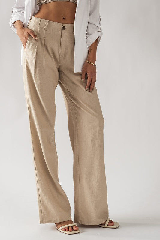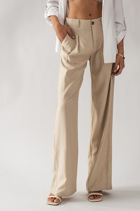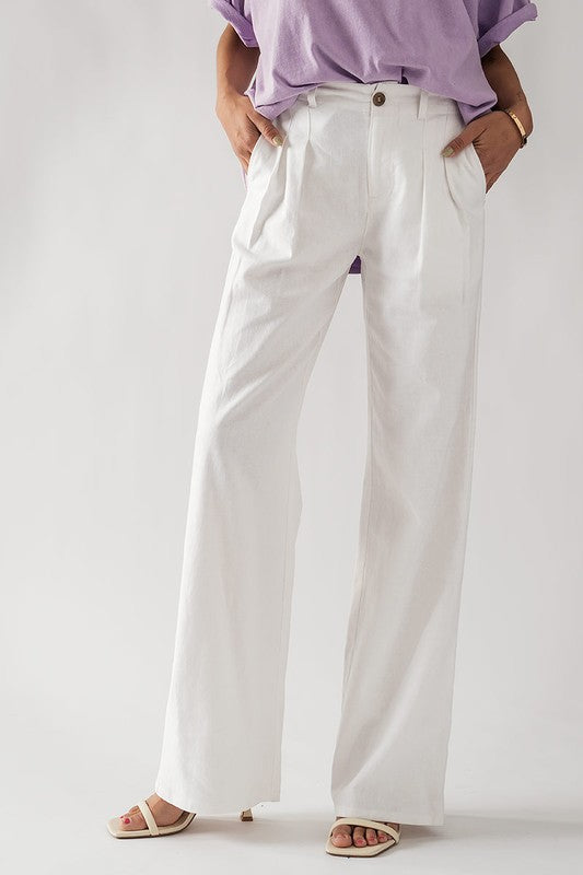 Let loose in the pocketed wide leg pants in linen that feature a structured waistband and wide legs.