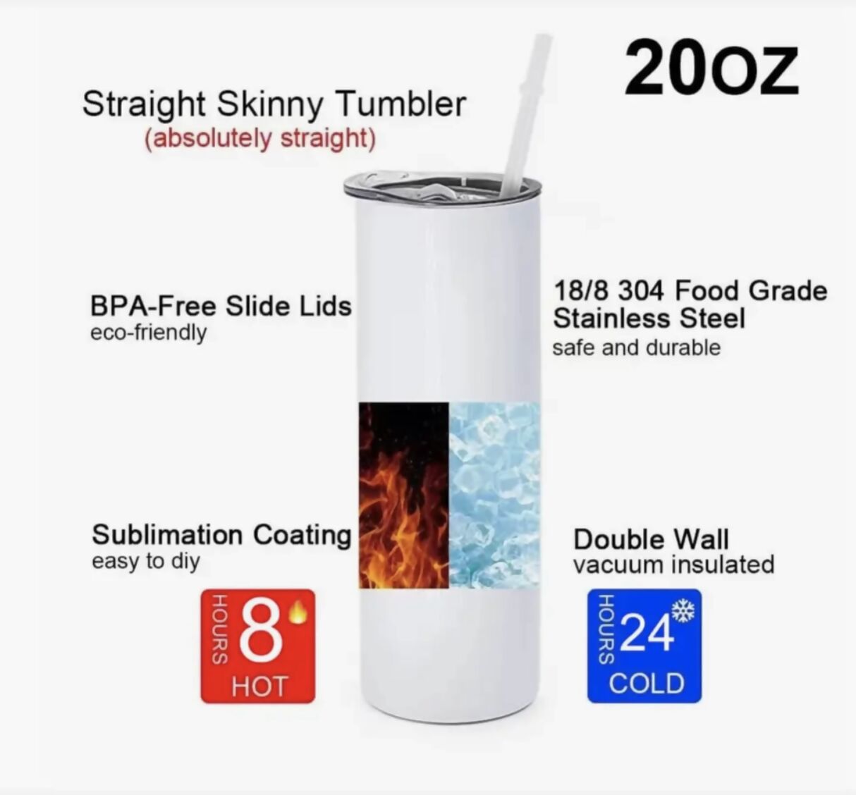 This travel cup is made using a sublimation process creating a smooth, printed finish that won't peel nor fade. ★ 20oz ★ Stainless Steel Core ★ Double Walled ,Vacuum Insulated ★ Do Not Microwave ★Comes with Lid & Plastic Straw ★Not Dishwasher Safe, Hand Wash Only