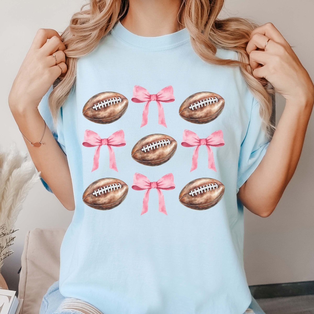 Celebrate your passion for football with our Football Bow Collage Comfort Color Tee, where sporty meets chic in the most delightful way. This tee combines style and comfort effortlessly, making it your ideal companion whether you're cheering in the stands or simply enjoying a laid-back day out.