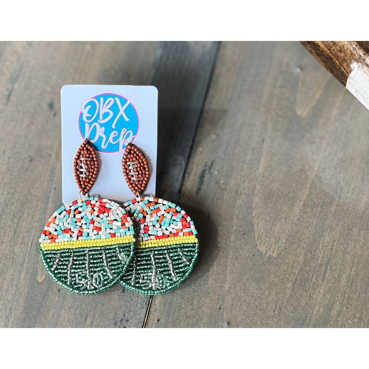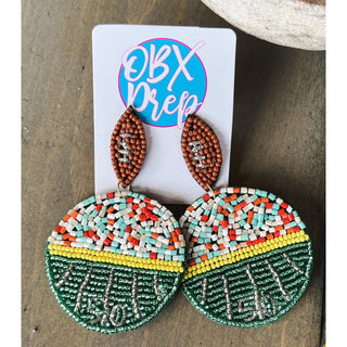 Seed Beaded Football Drop Earrings