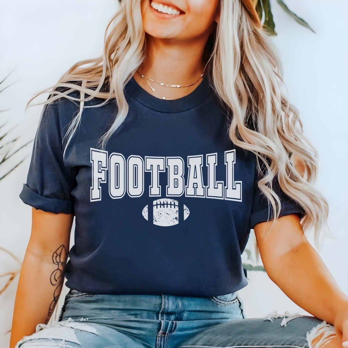 Attention all football enthusiasts! Ready to show off your love for the sport with a touch of rugged style? Meet your new favorite outfit companion, the "Football With Distressed Football" Graphic Tee. Perfect for injecting that gritty football spirit into your wardrobe, this tee is your ideal companion for every game day, whether you're cheering from the sidelines, hosting a tailgate, or just enjoying the game from your couch.