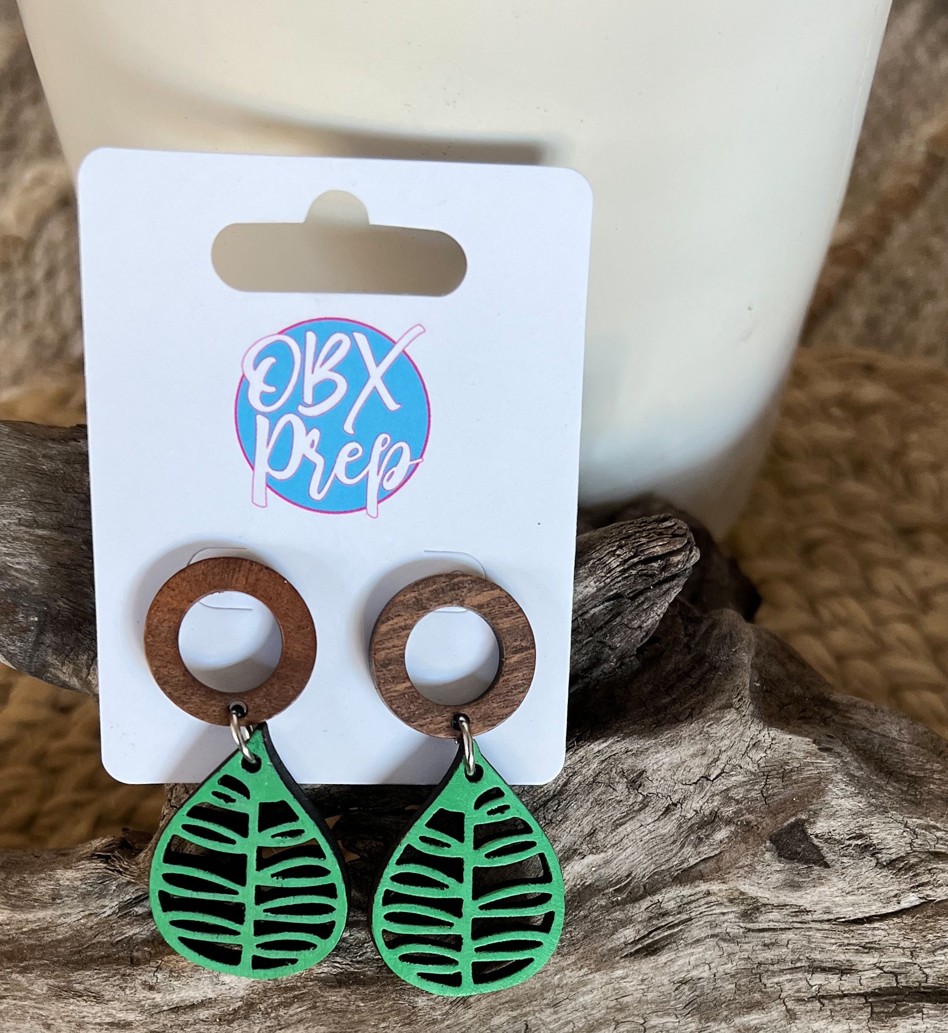 Bring a touch of nature to your style with our Hand-Painted Green Leaf Earrings, perfect for plant lovers and boho enthusiasts alike. These elegant earrings feature a delicate green leaf design, hand-painted and suspended from a hollow circle stud topper. Handmade with care in the Outer Banks of North Carolina, they exude a natural charm and effortless style.
