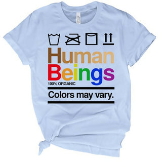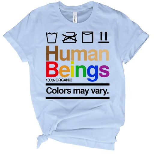 Human Beings, Colors May Vary. The design is dye sublimated onto a poly/cotton blend tee for the most vibrancy. This graphic is offered on both kids and adult sizes. The tee has a unisex, relaxed fit and runs true to size, Please see the size chart for exact measurements.