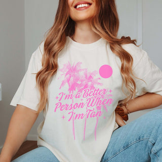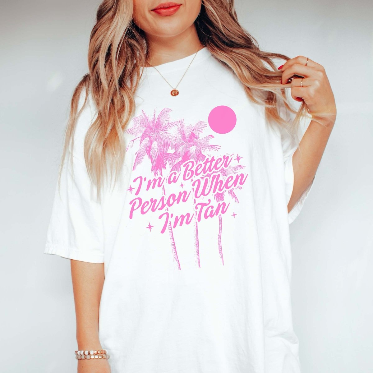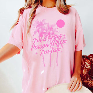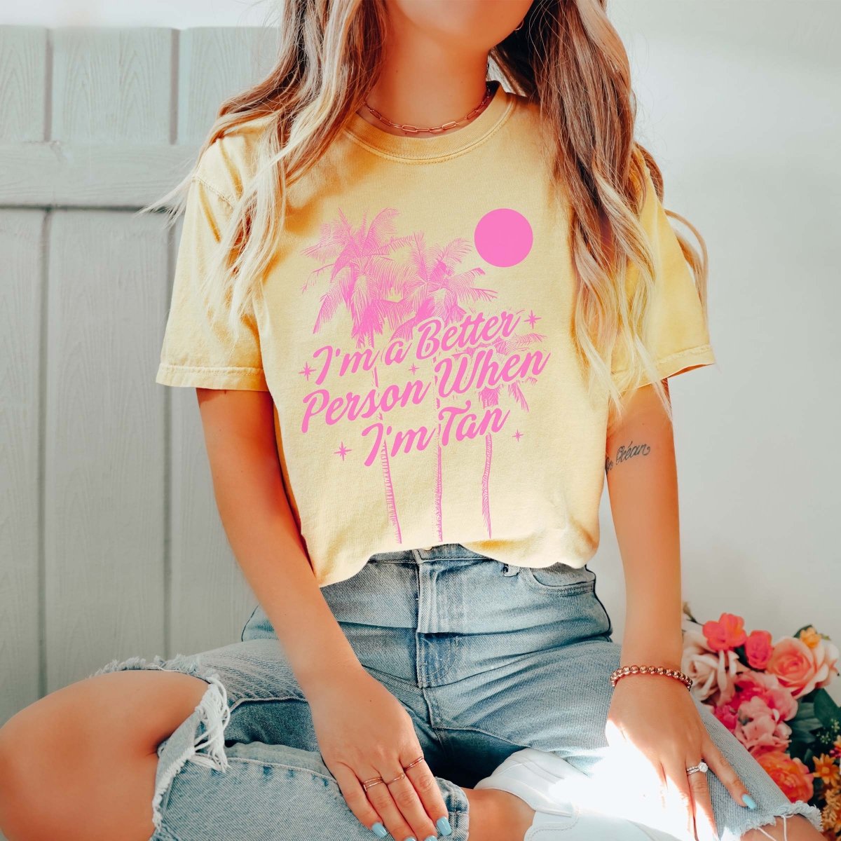 From sun-drenched adventures to laid-back afternoons under the sun, let the "I'm A Better Person When I'm Tan" Comfort Color Tee be your favorite pick for soaking up the summer vibes. Wear it with pride and let your glowing beauty take center stage!