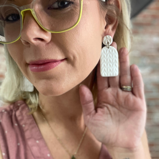 Please note that clay earrings have some flexibility but should be handled with care, please store them properly when traveling to ensure protection & extend the life of the earrings! If they need to be cleaned, use a damp cloth with light pressure. Use of oils, creams, perfumes and etc may affect longevity. Do not wear in water. They may break or bend if dropped.