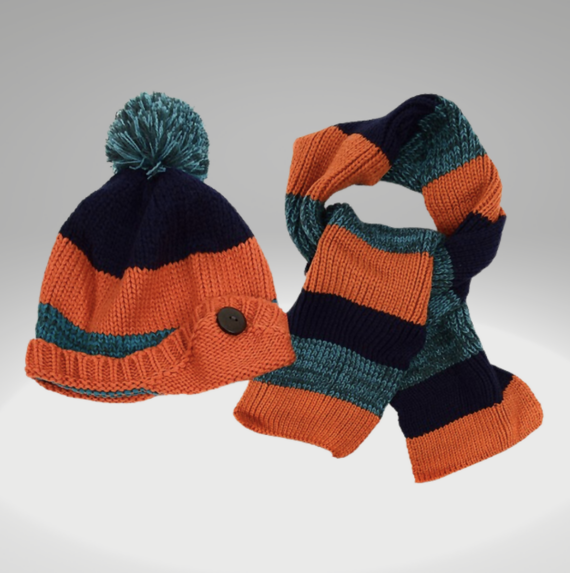 A perfect gift for boys and girls. These adorable hat and scarves keep them warm and come in 3 darling color schemes. Winter Scarf and Hat 2 PC SetFabric : 100% AcrylicBoys and Girls - One size fits all