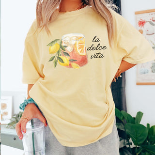 Step into the sweet life with the La Dolce Vita Social Club Comfort Color Tee. Celebrating the art of enjoying life's pleasures, this tee is your go-to for both style and comfort.