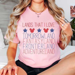 Celebrate your love for the Magic Kingdom in style with our Lands That I Love graphic tee! This lime graphic tee features a creative design listing the beloved lands of the park, making it a must-have for every Disney enthusiast. Whether you're planning your next park adventure or lounging at home, this tee promises comfort and flair.